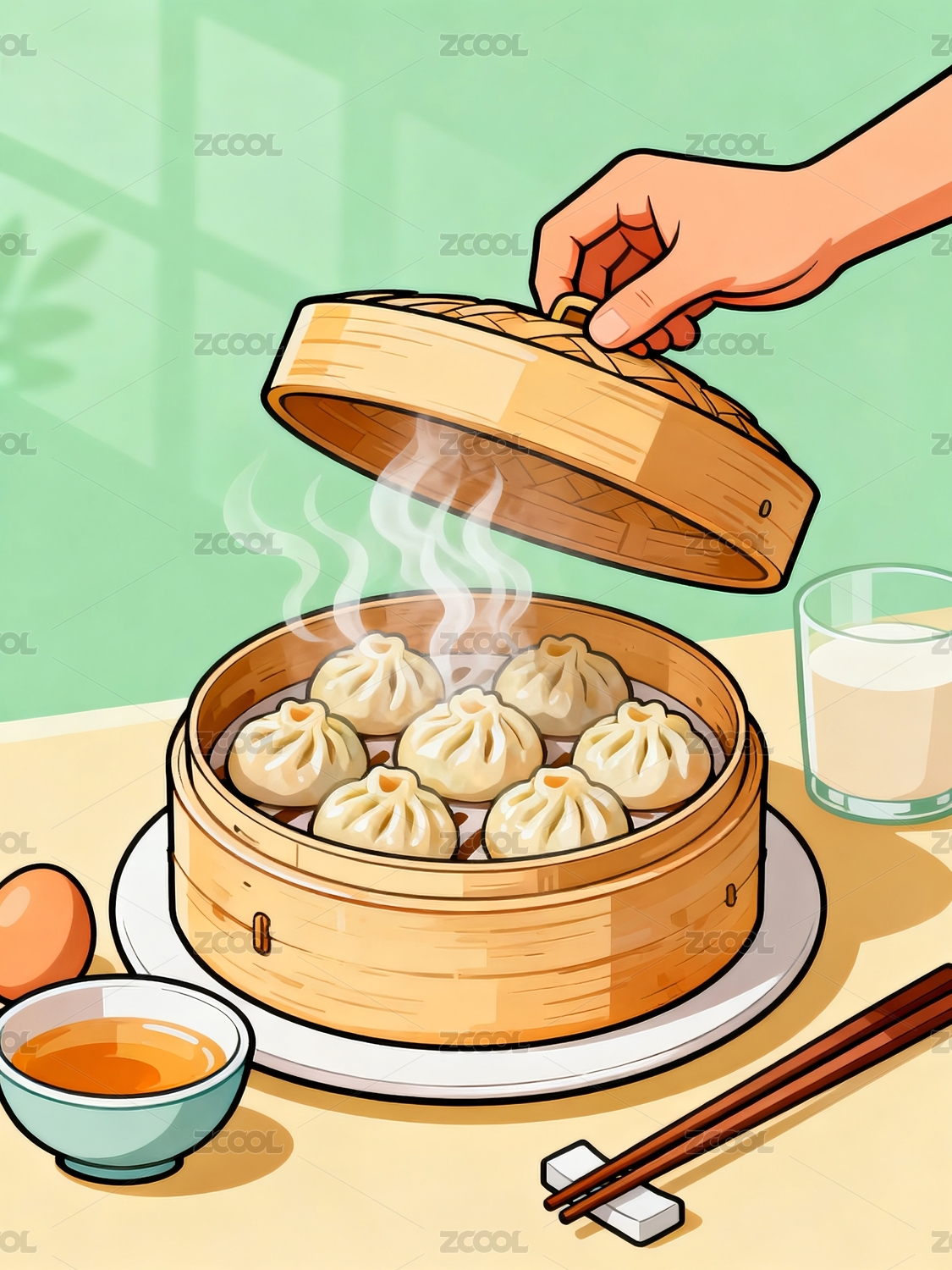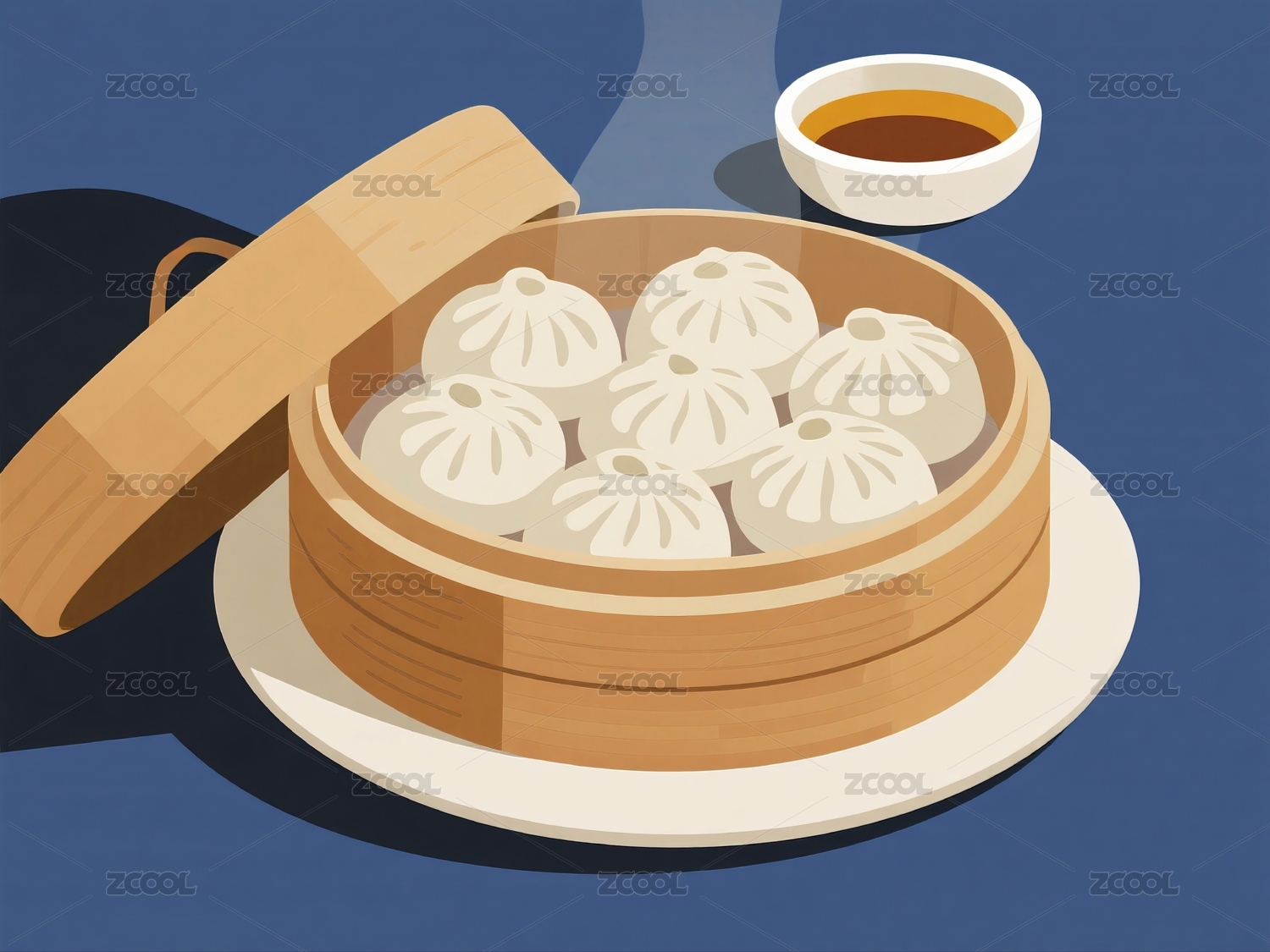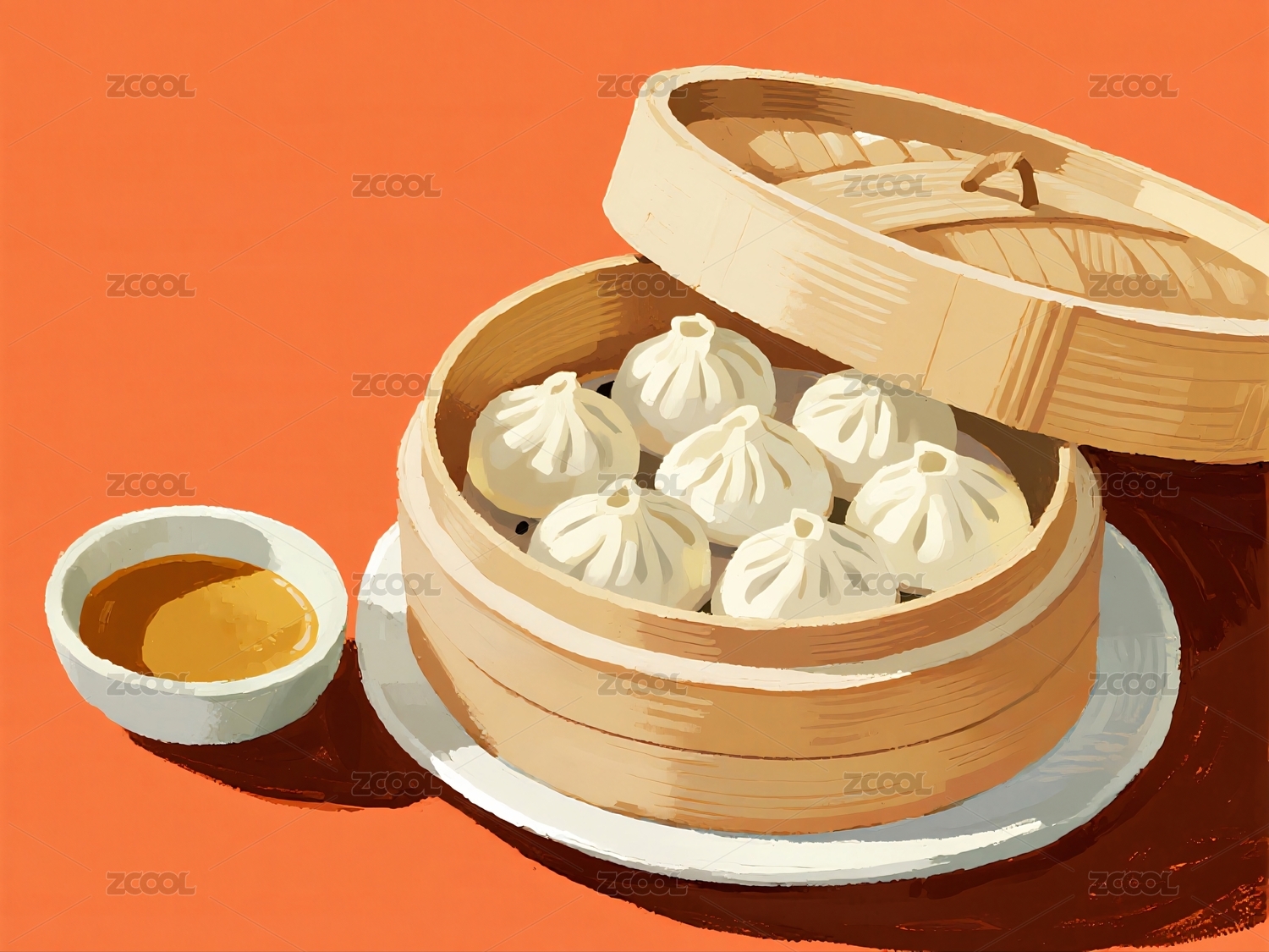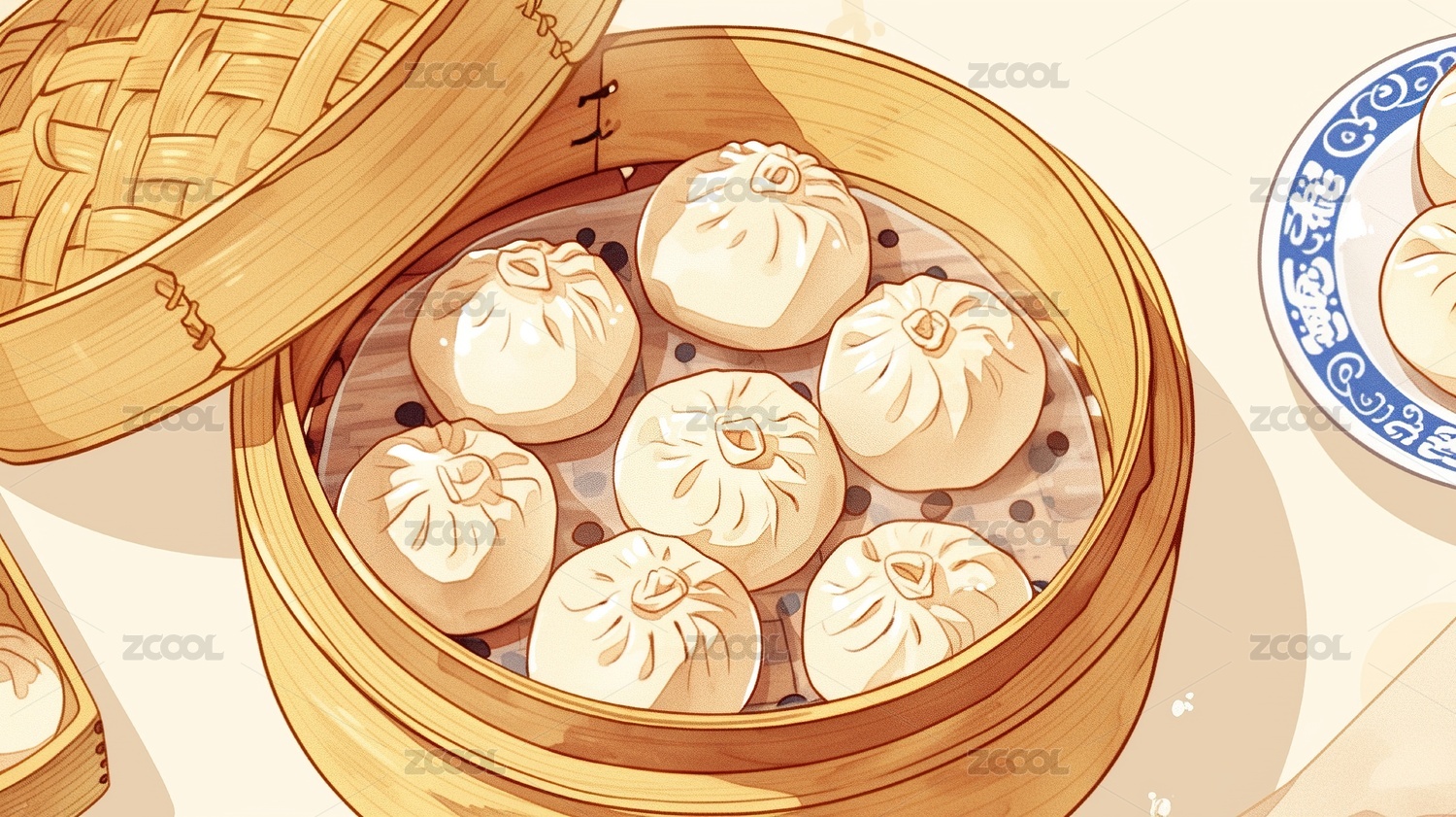 蒸笼上的小笼包插画