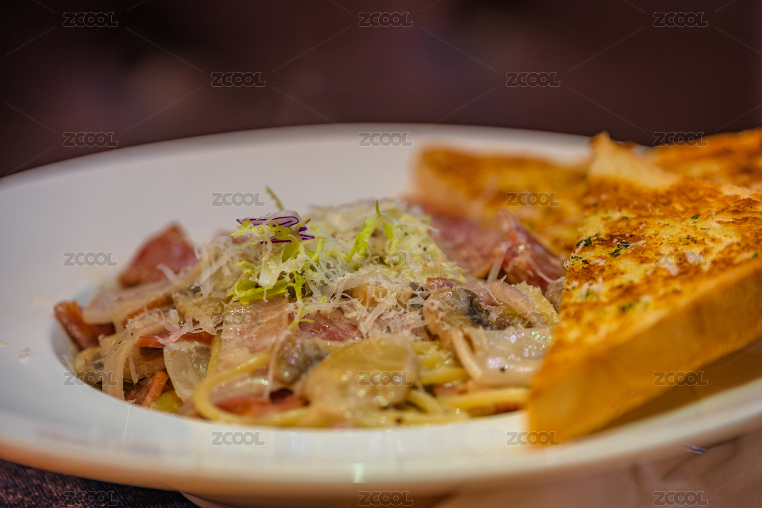 意大利面配烤面包片