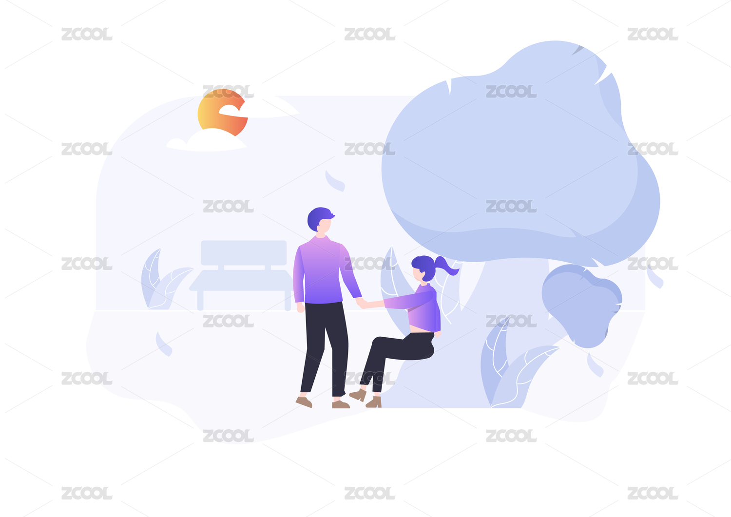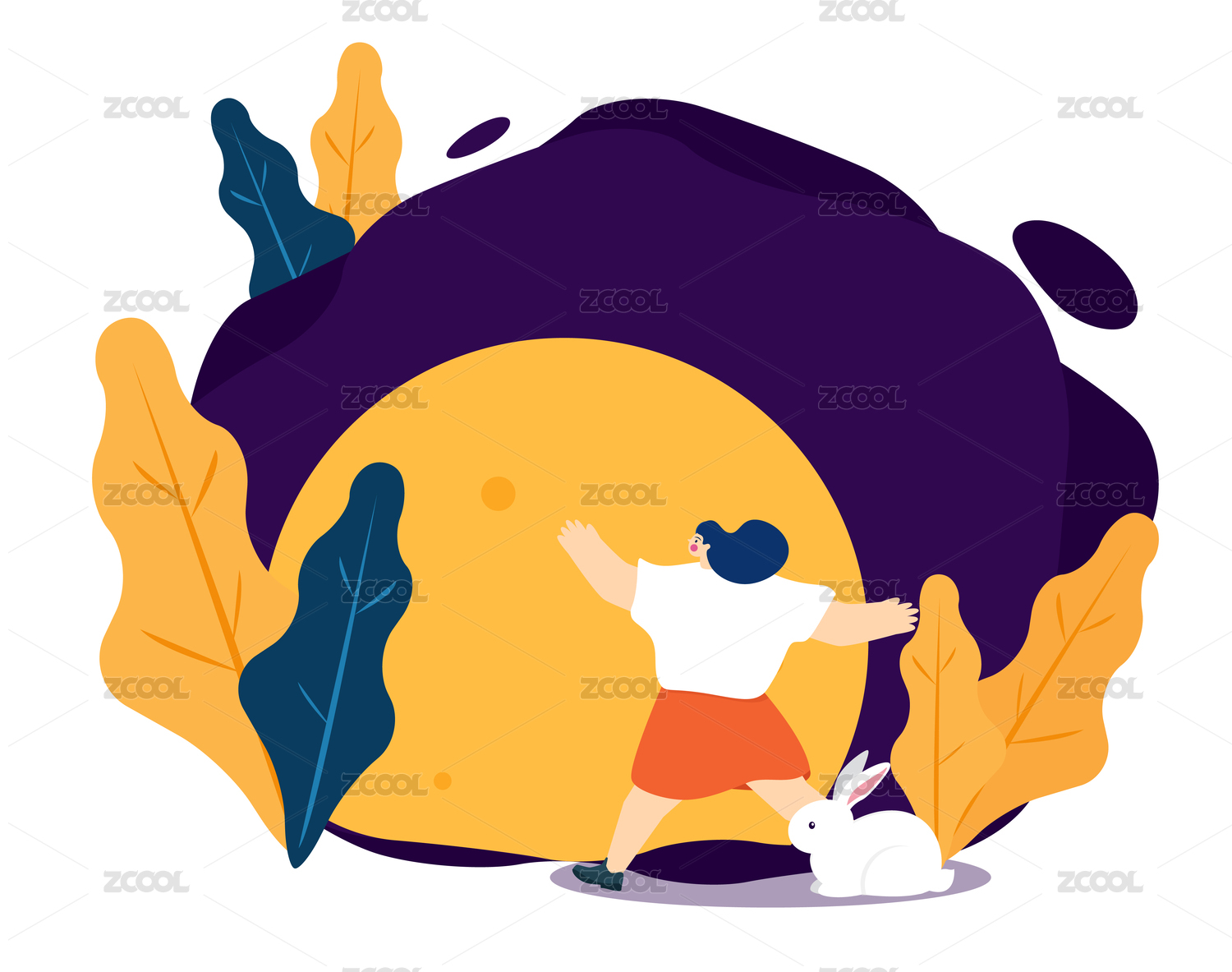 秋季在风中撑伞赶路的女孩金秋扁平风插画