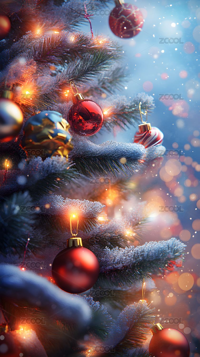 节日,装饰,氛围,灯光,庆祝,温暖,雪,圣诞树,红球,树枝