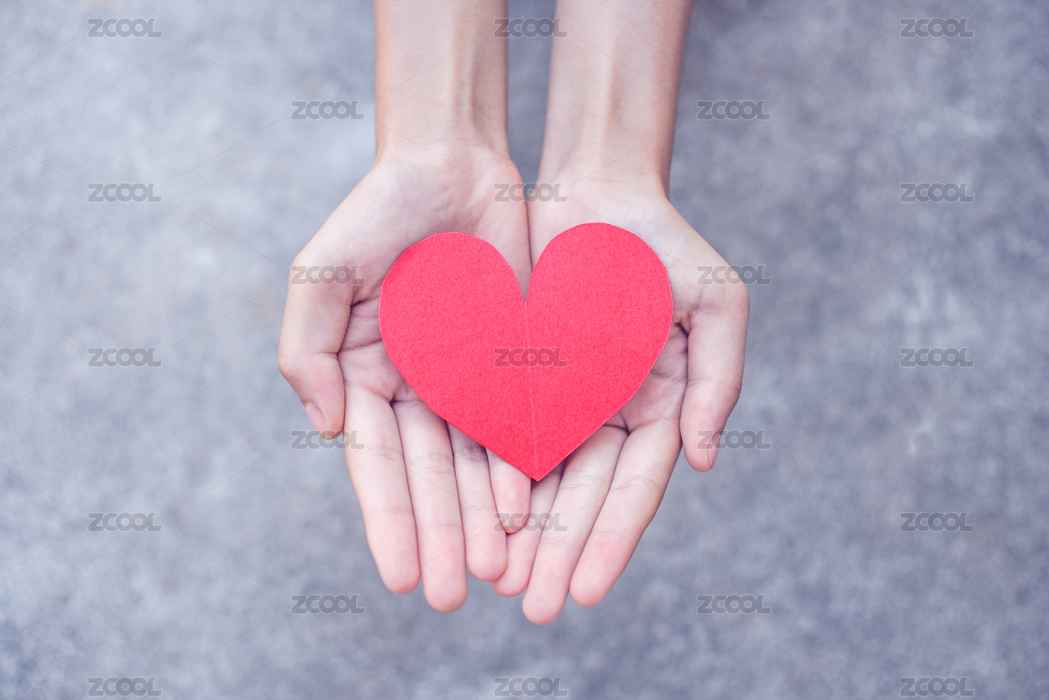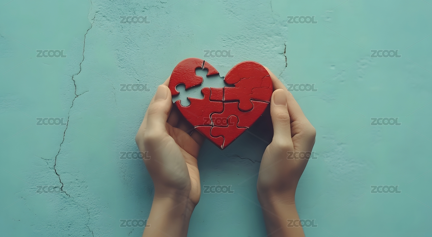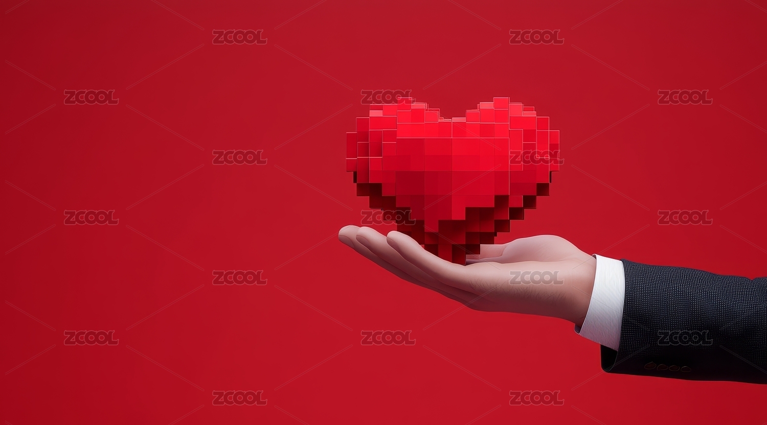 一对拥抱的情侣站在高处看着远处的爱心微缩