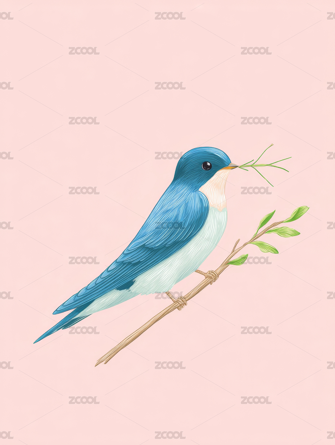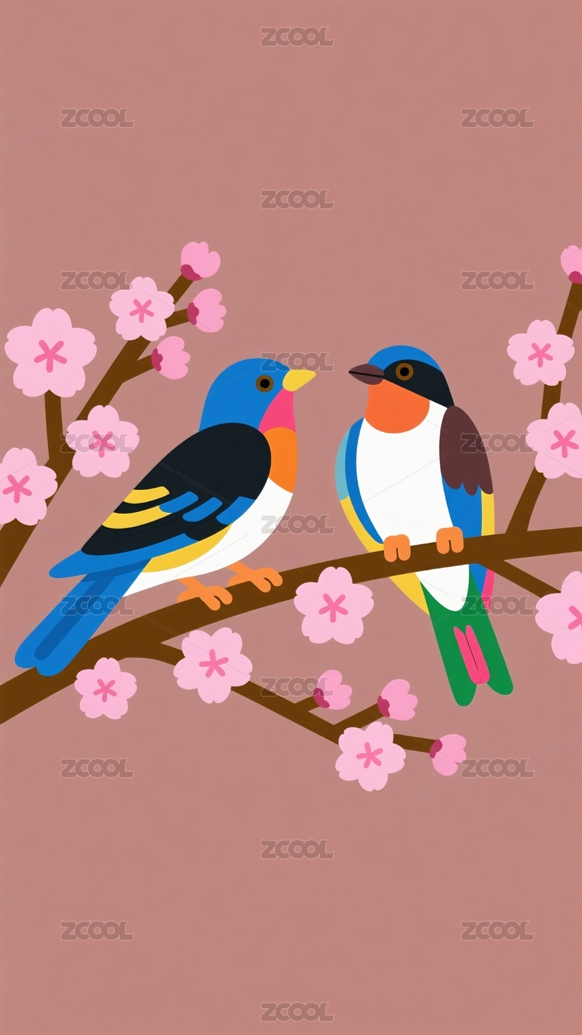 鸟 插画 扁平化 简洁 树枝 优雅 纯色