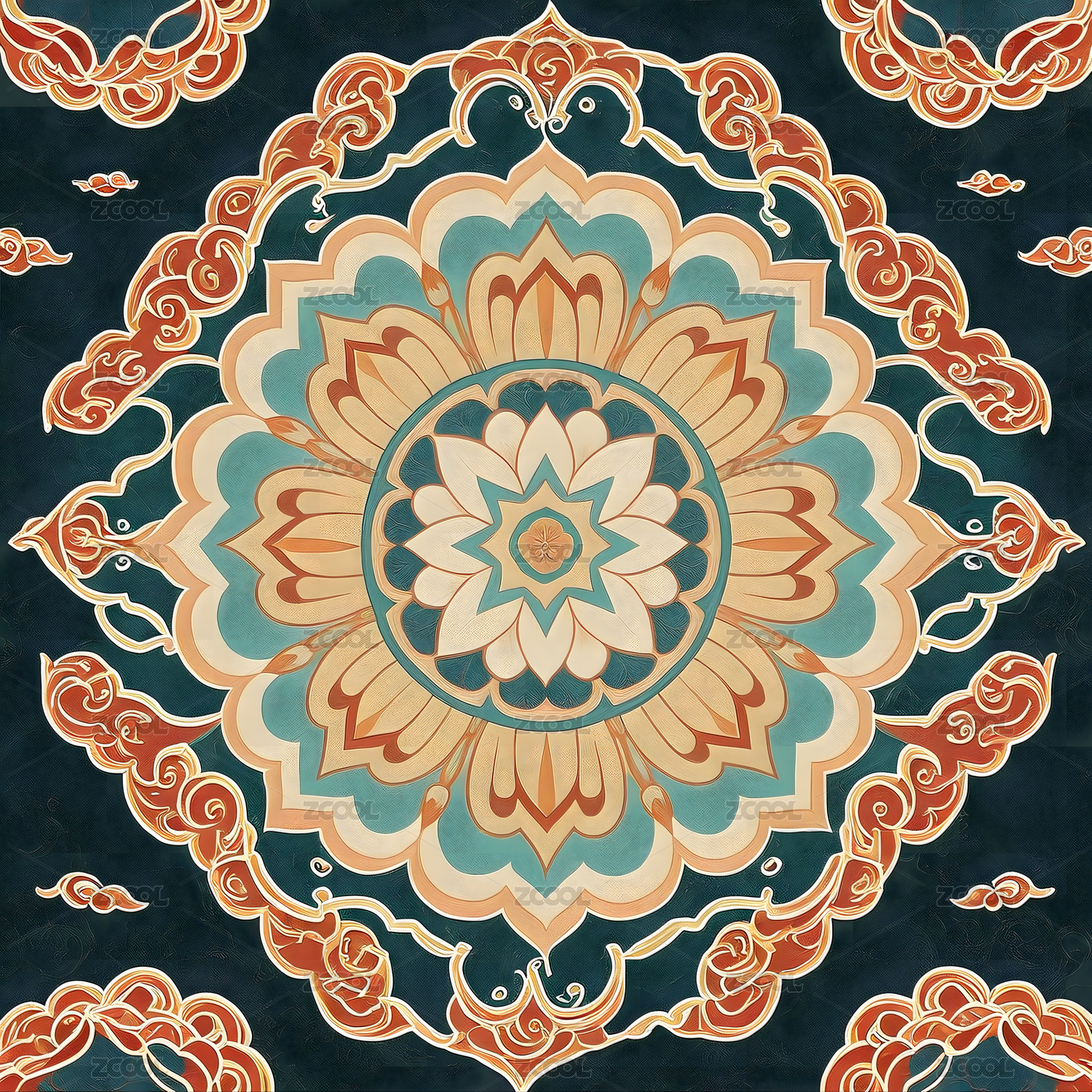 敦煌纹样四方连续图案无缝纹理图手账贴纸