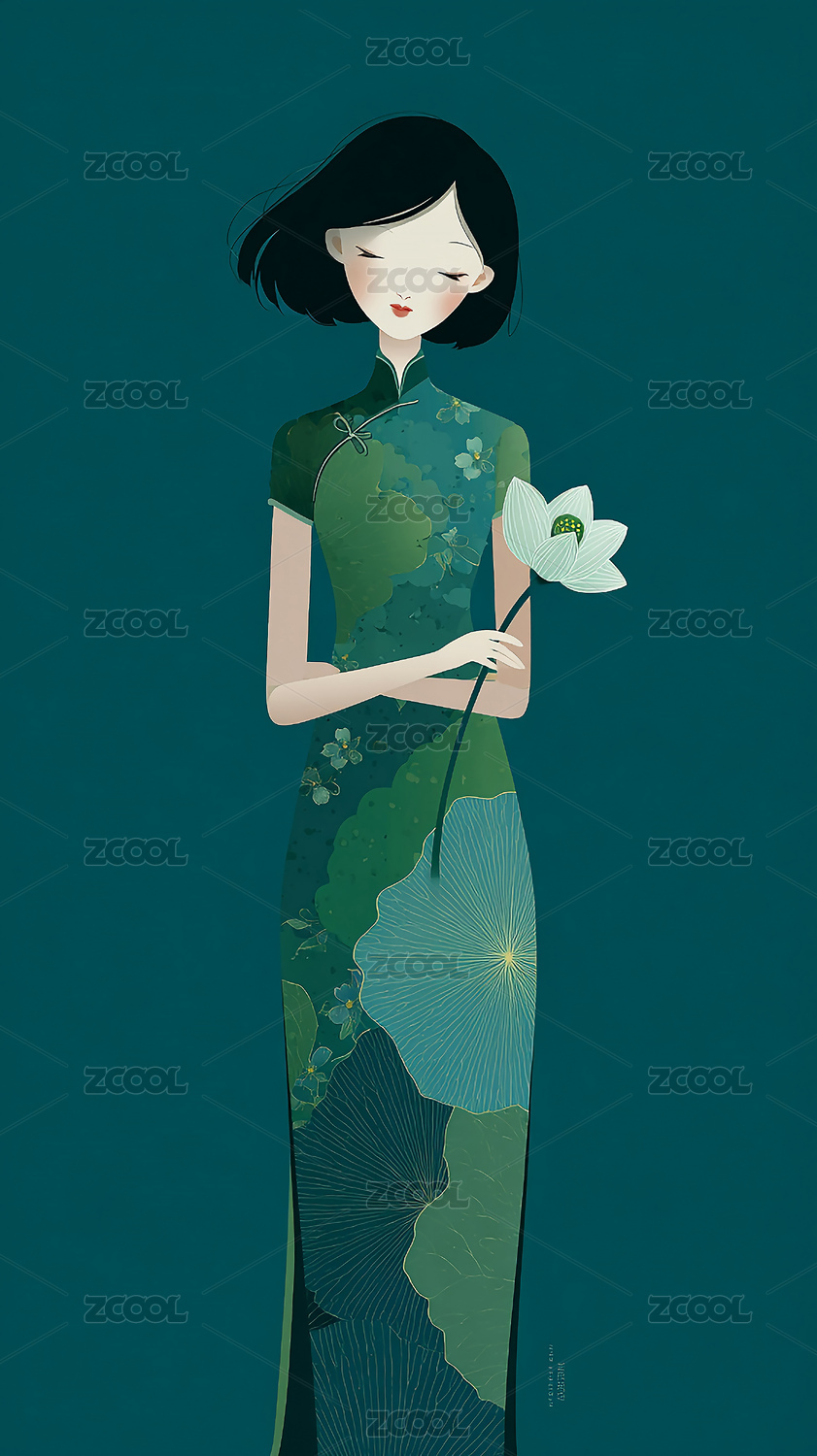 国风手持荷花新中式东方美学优雅女性