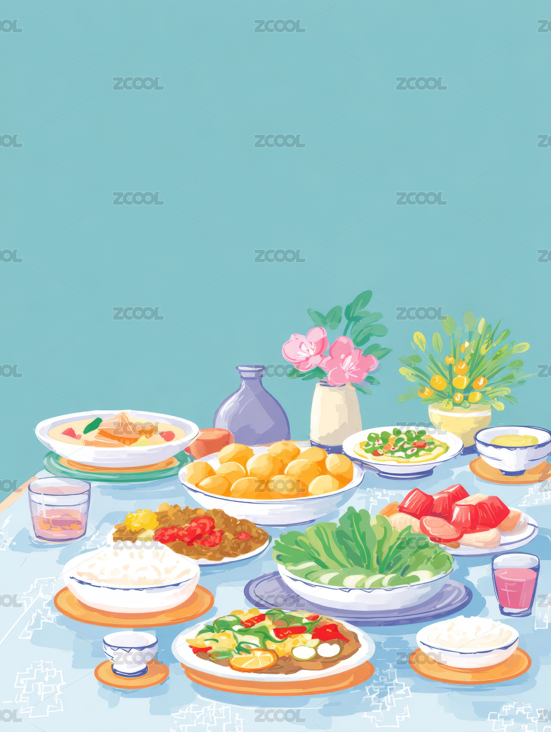 丰盛晚餐插画