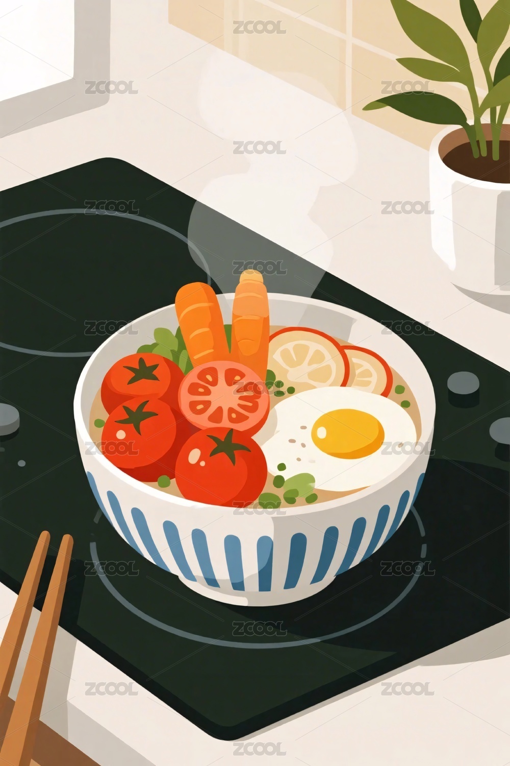 厨房美食插画