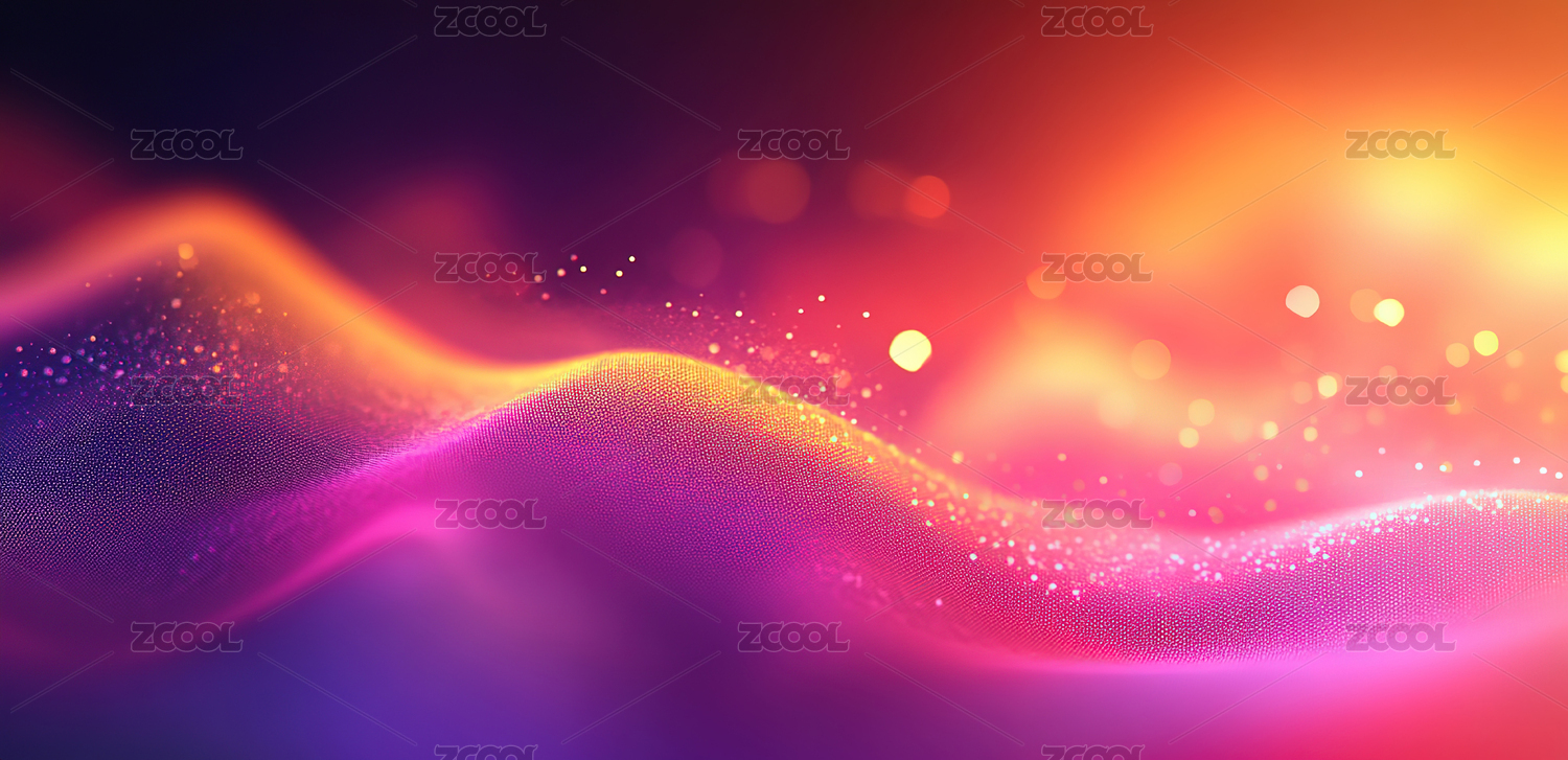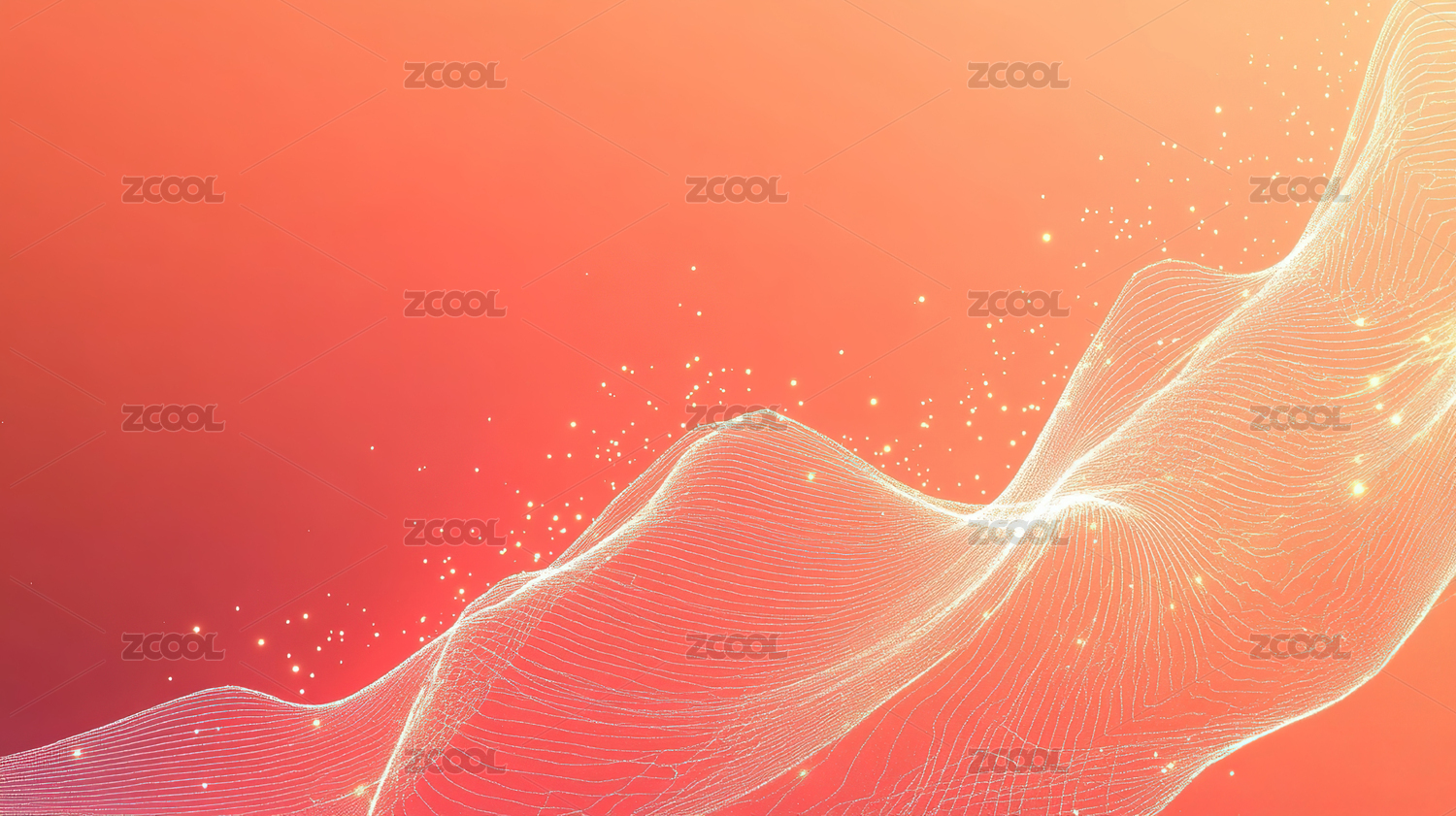 珊瑚色未来感抽象波浪背景带有发光粒子