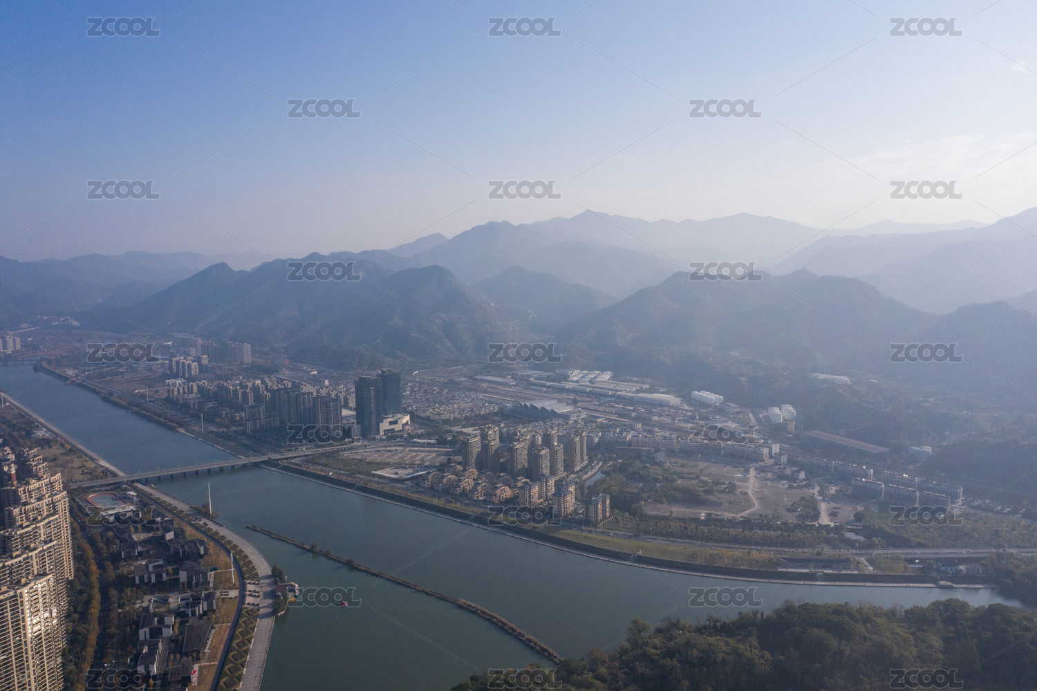中国浙江省桐庐县富春江二桥城市环境