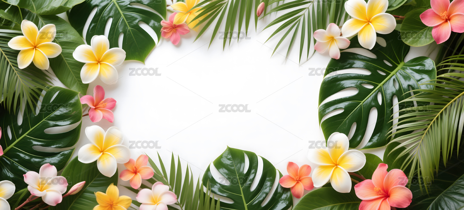 热带花卉与绿叶边框