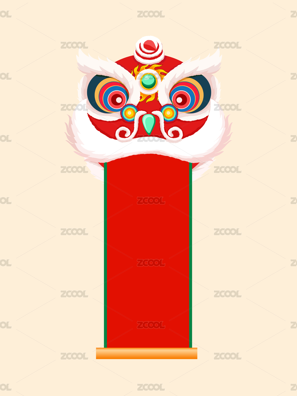 国潮,喜庆,中国,新年,春节,海报,插画,年画,狮子,狮子头