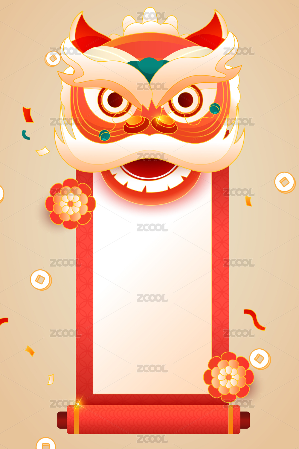 新年灯笼舞狮元素,可以自行加文字和祝福语