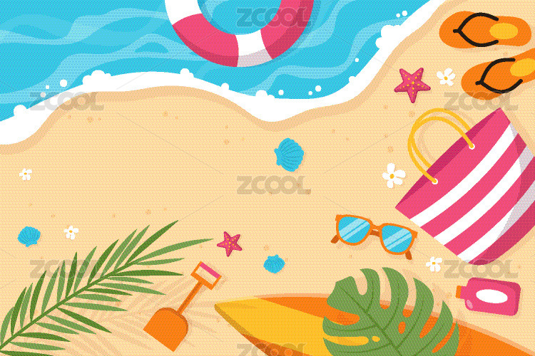 卡通度假沙滩背景素材