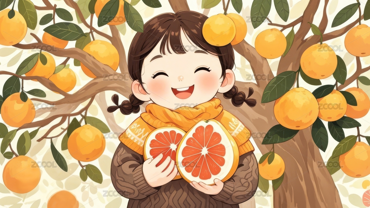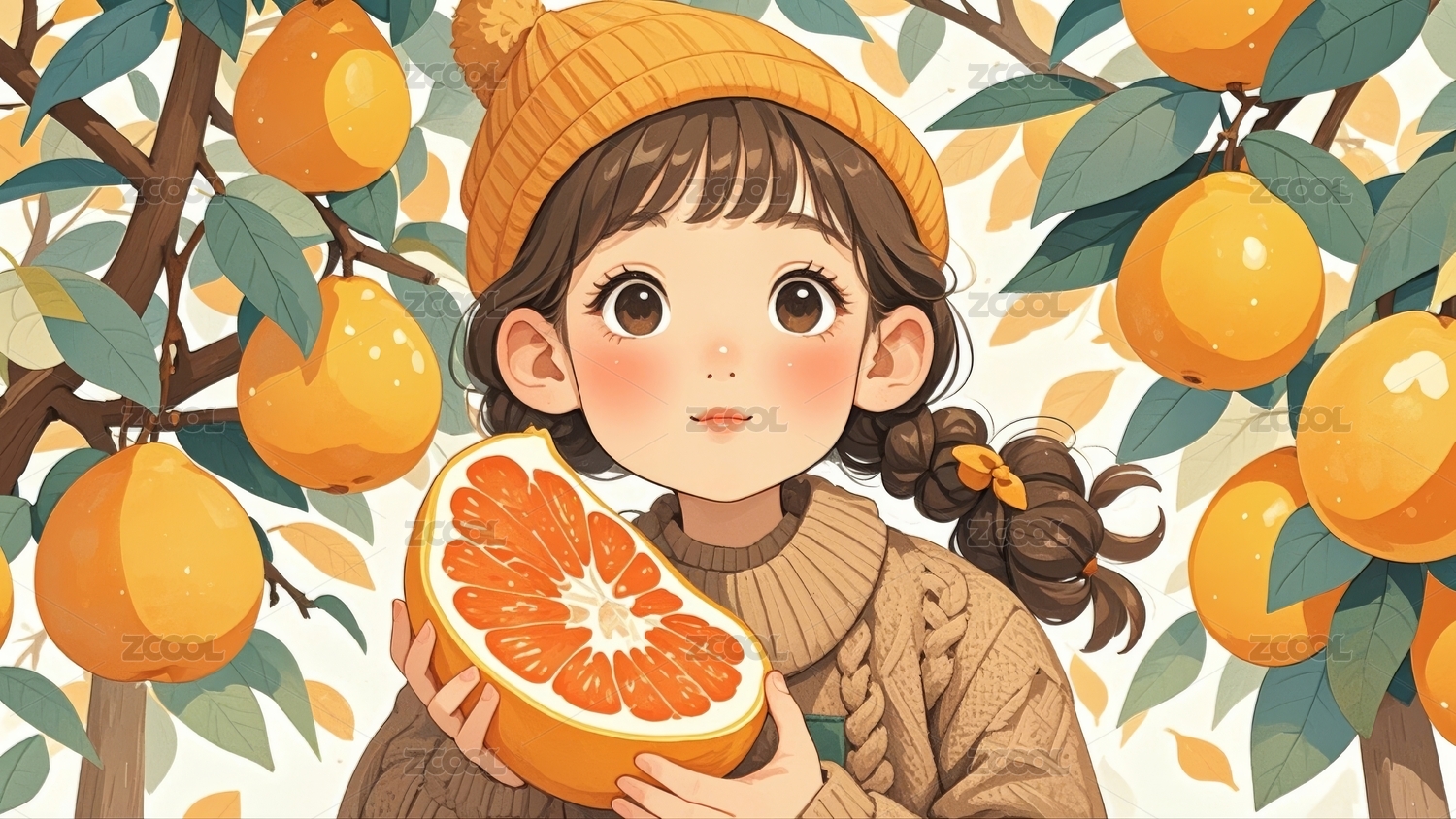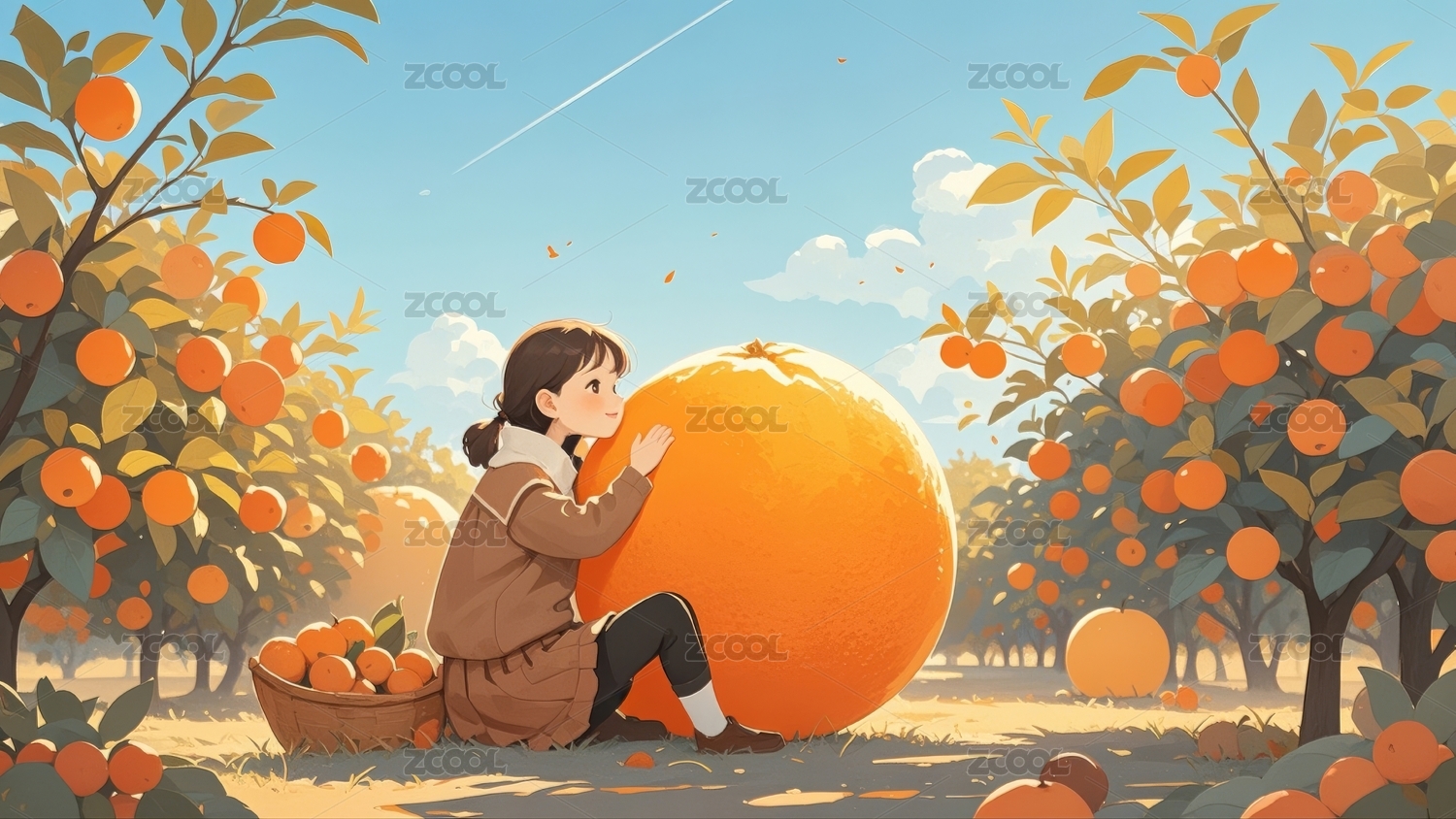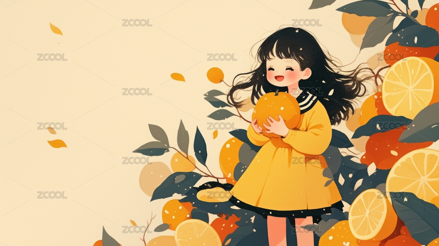 女孩,卡通,插画,可爱,温暖,清新,阳光,快乐,场景,色彩