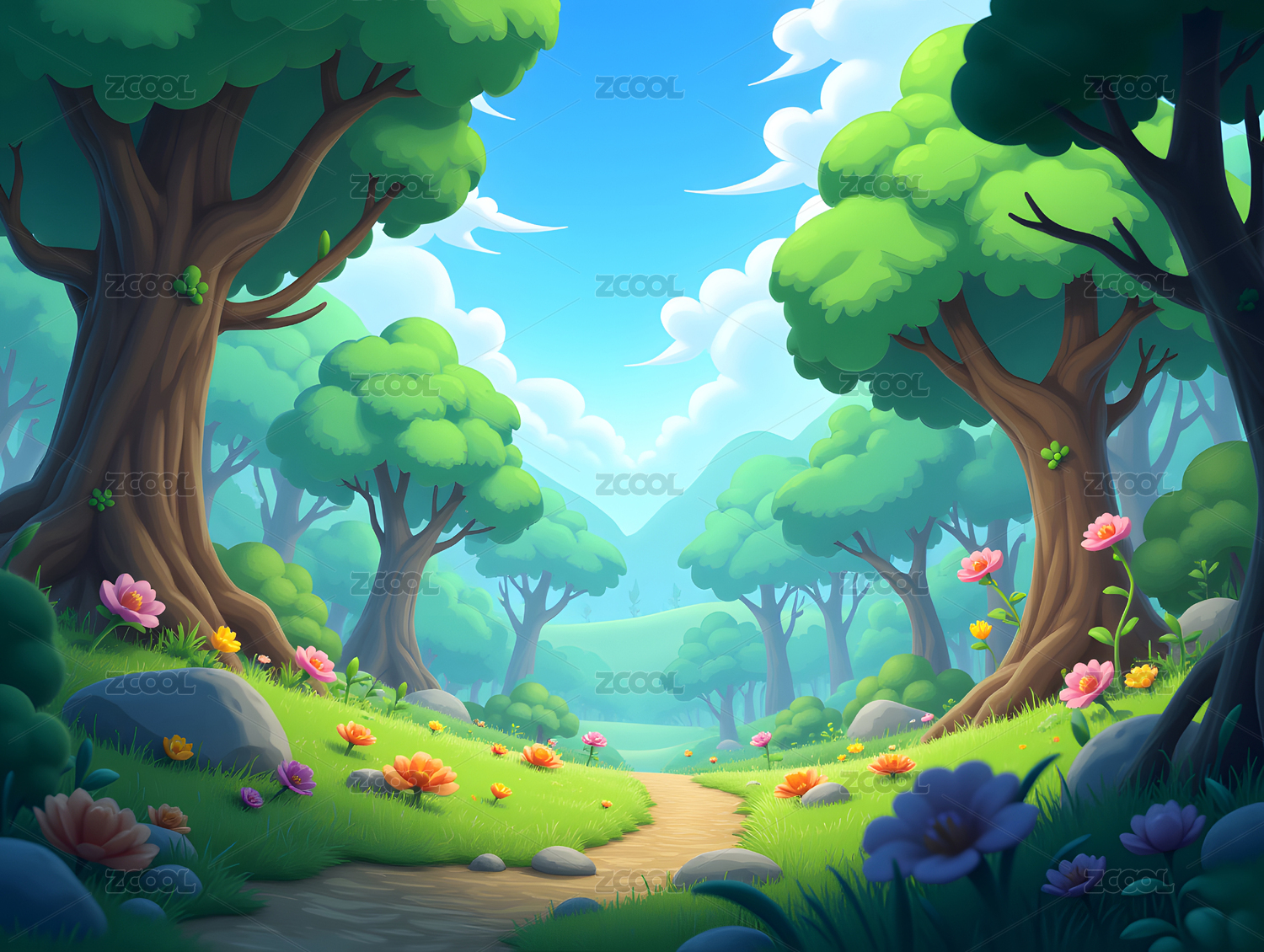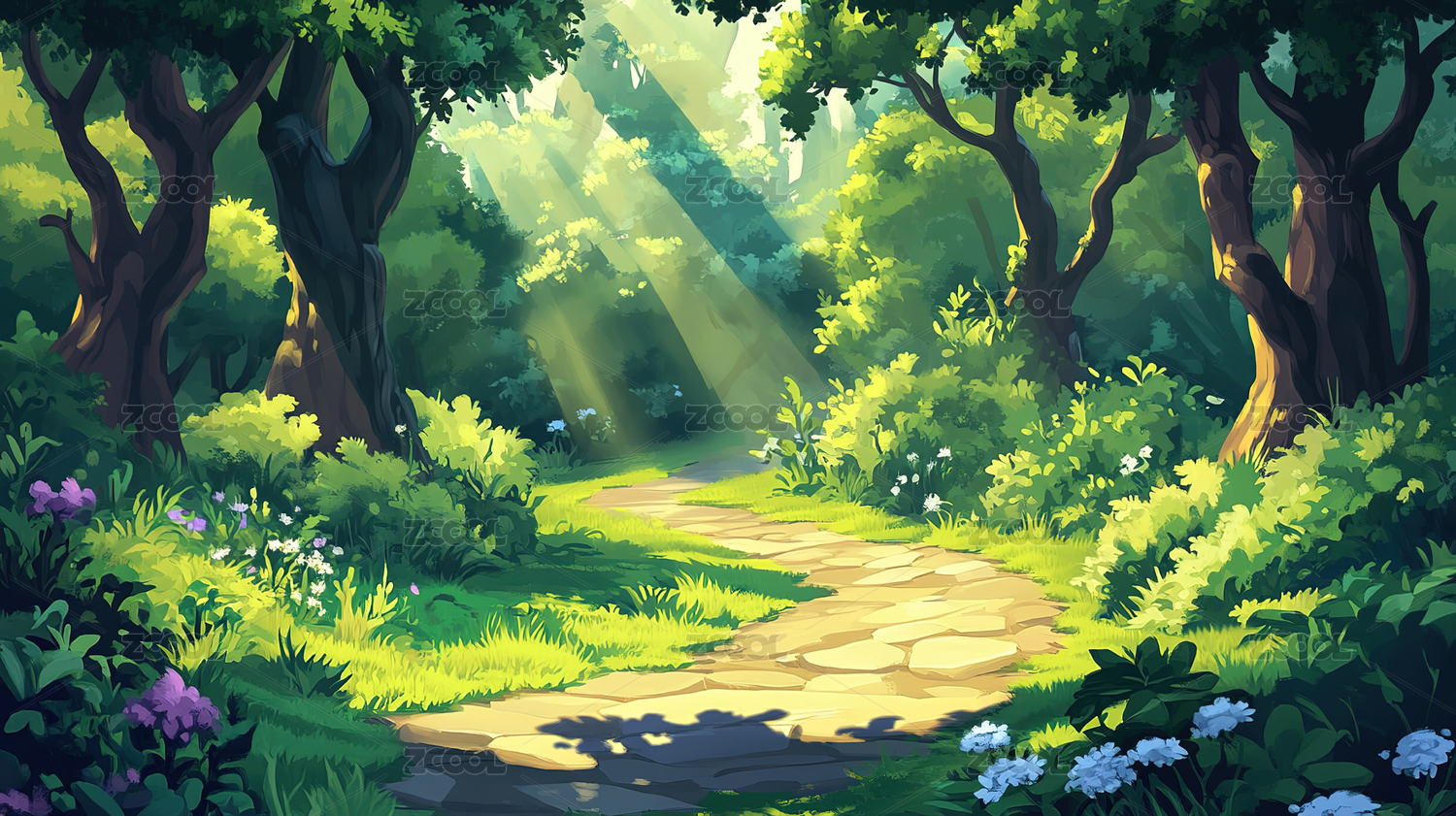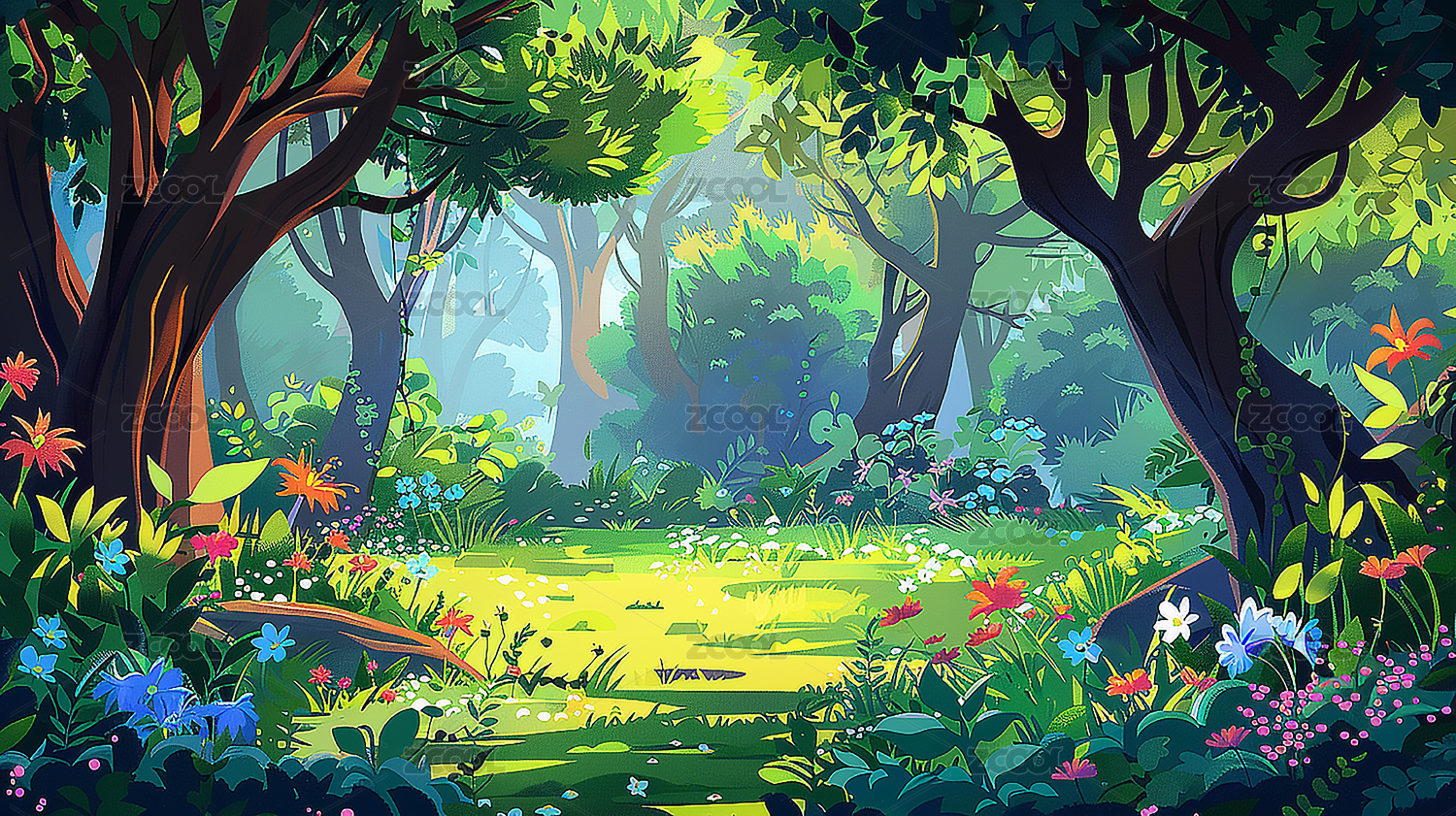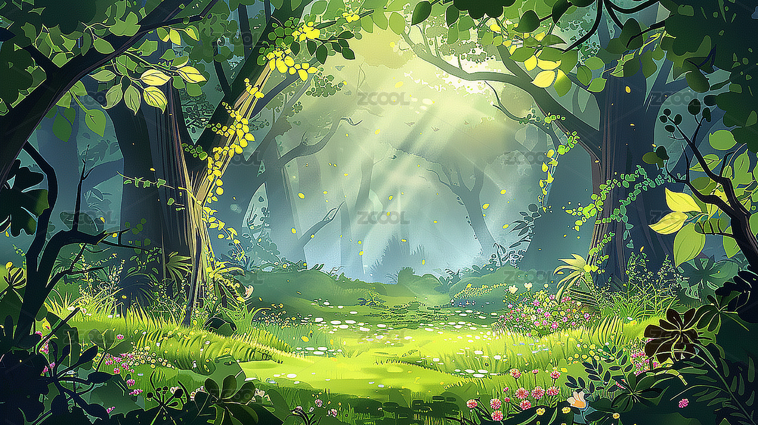 森林,树木,绿叶,梦幻,奇幻,精灵,光线,色彩,鲜花,草地