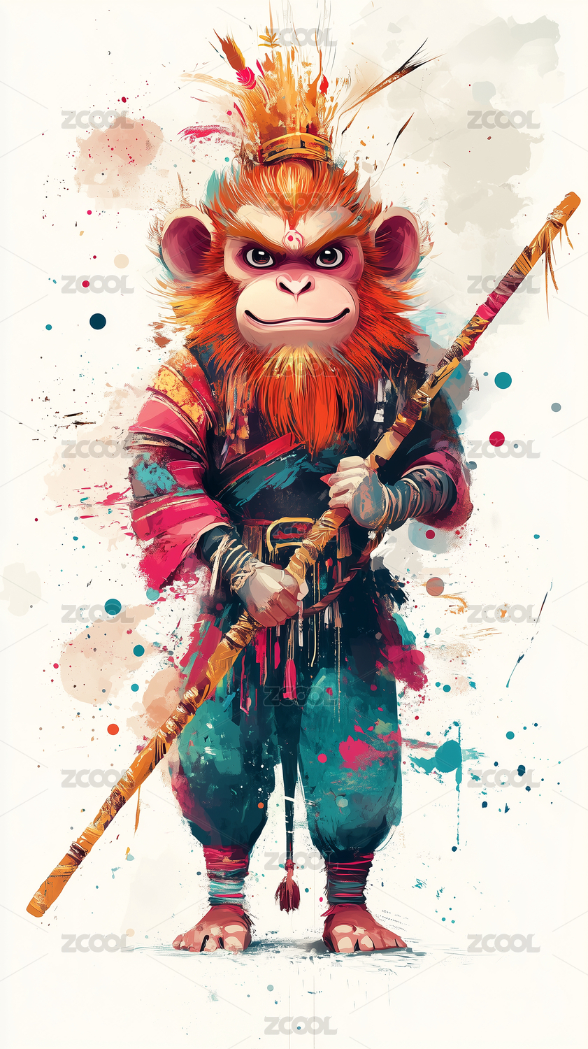 西游记 孙悟空 美猴王 水彩插画水墨插画
