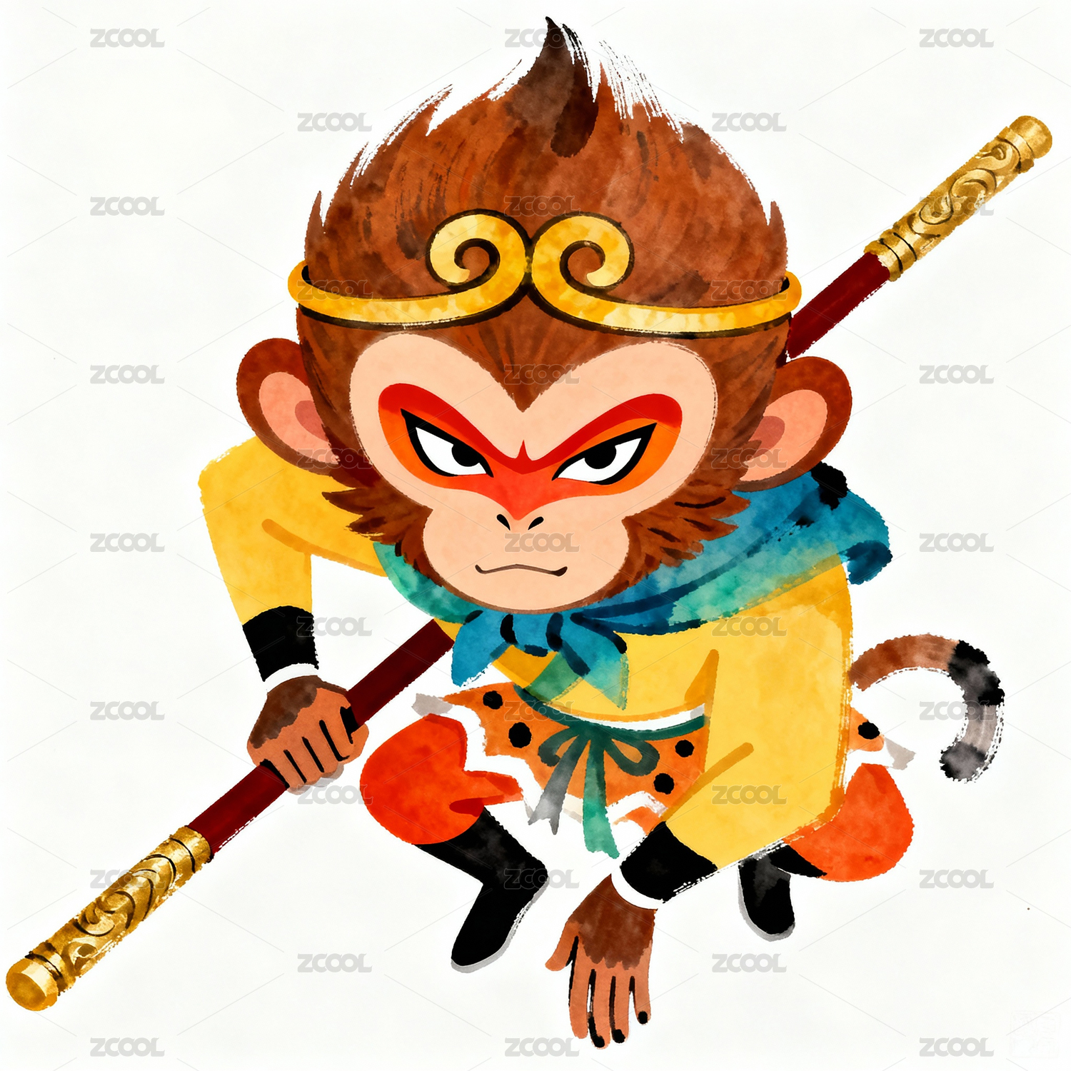 孙悟空 美猴王 西游记水墨插画 水彩插画