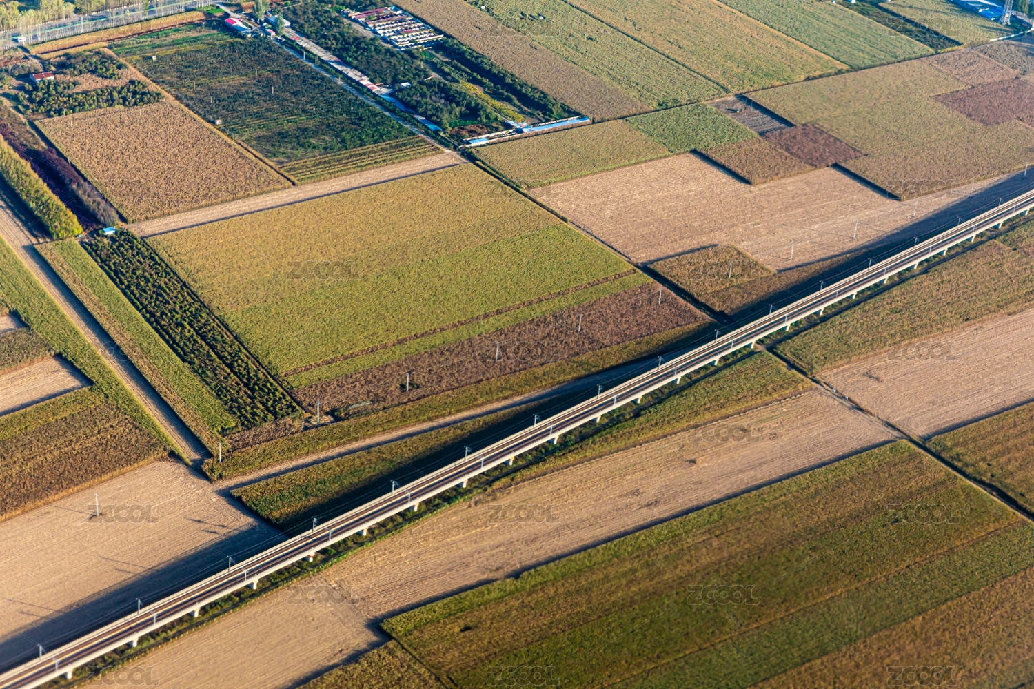 航拍秋日高铁穿越河南方城乡村田野大地景观