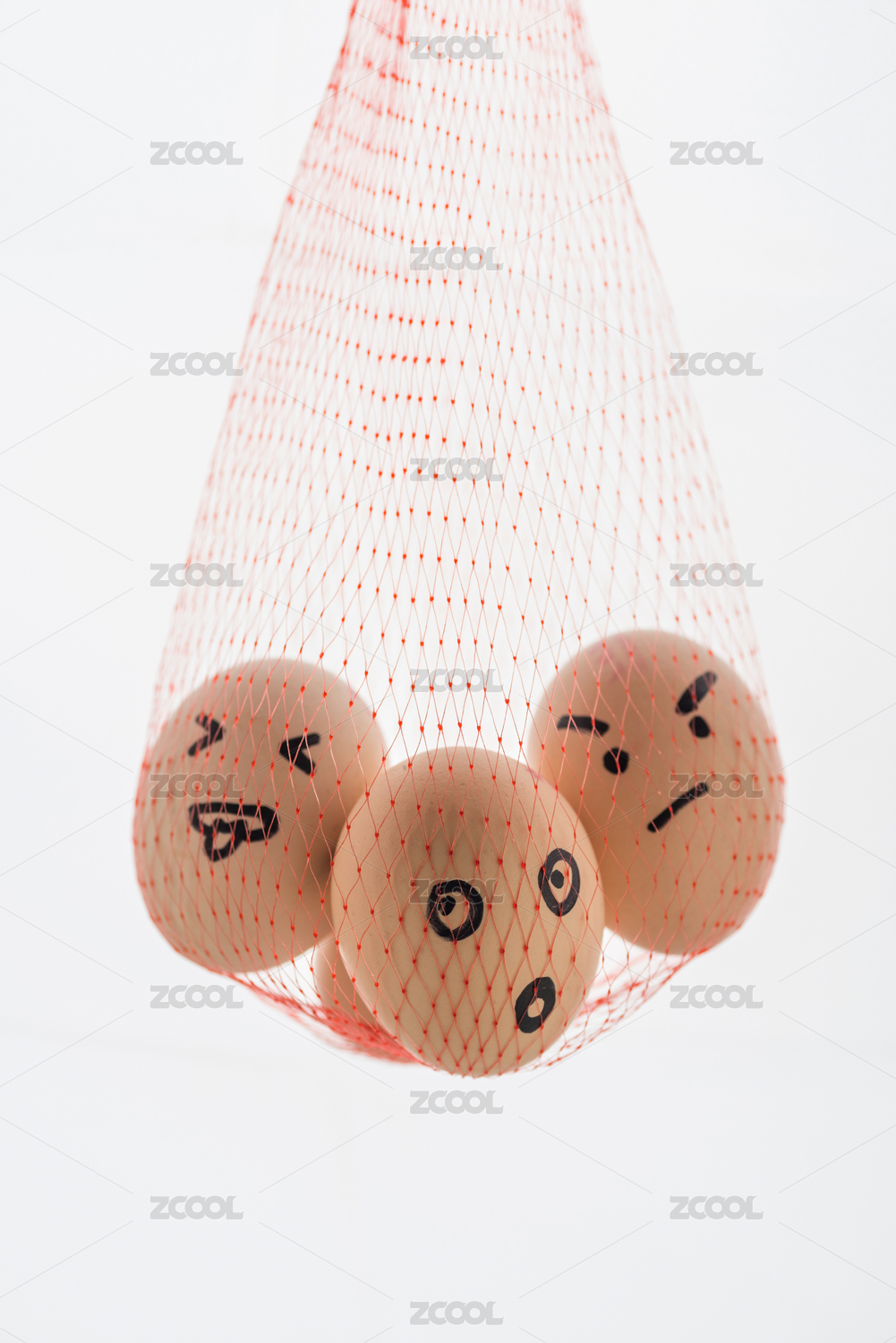 网兜里三个带有表情的土鸡蛋