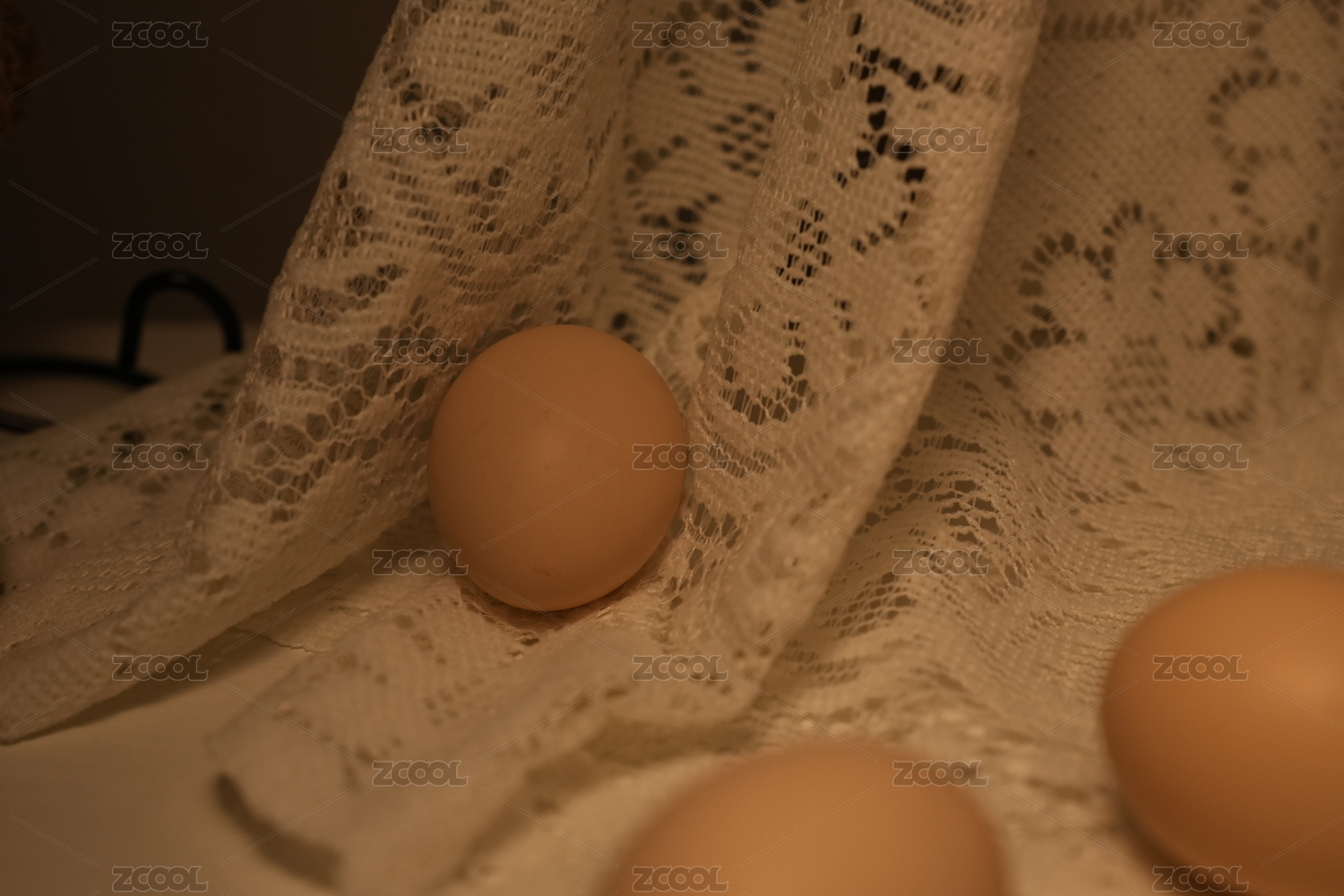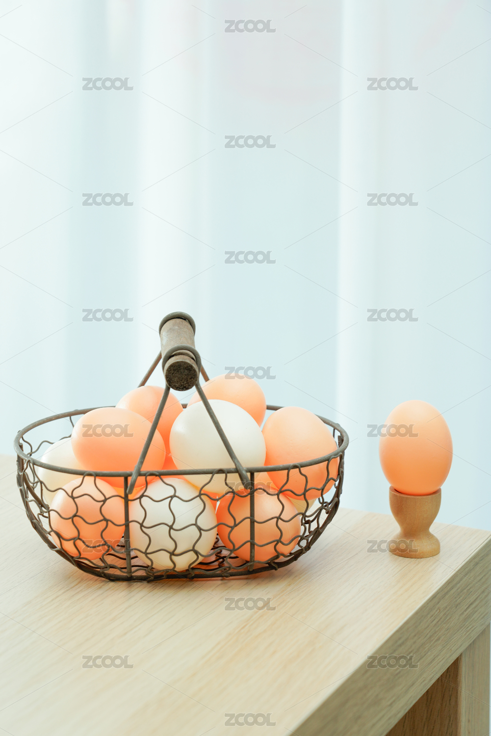 桌面上的一金属篮筐鸡蛋