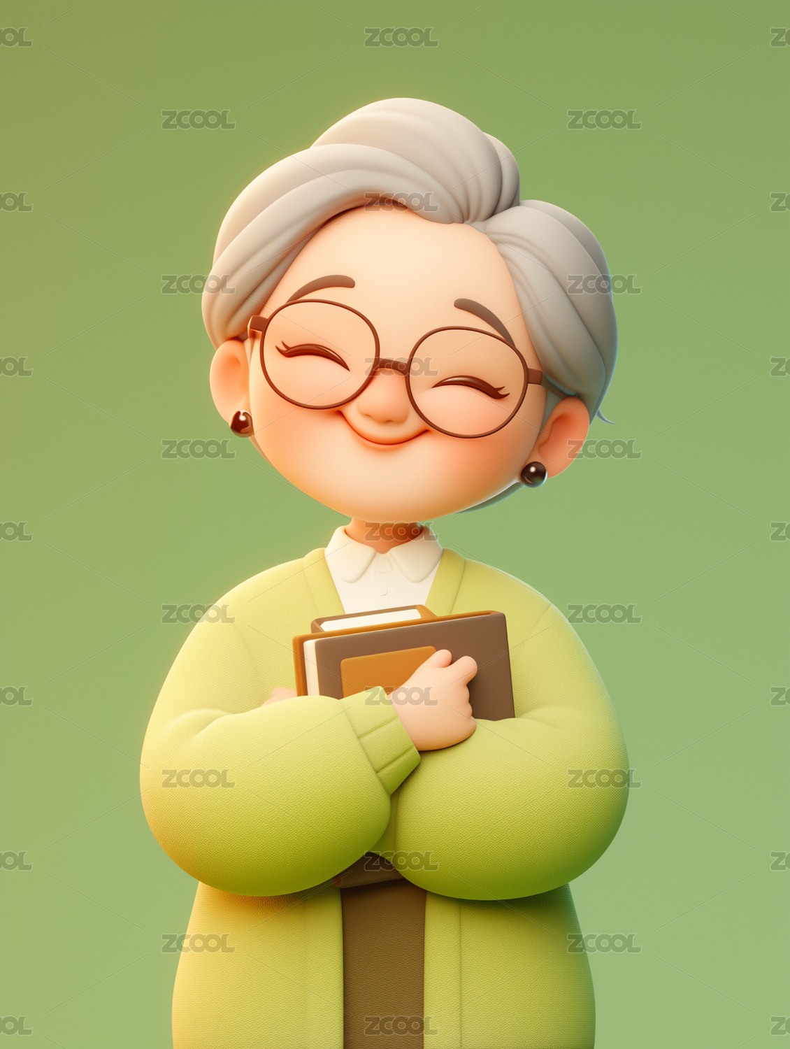 3D手拿书本的老奶奶角色插画