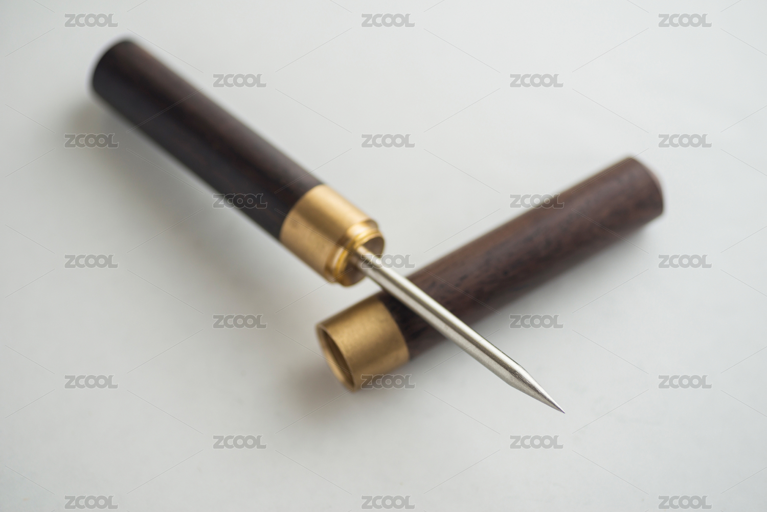 茶针,茶刀,茶具,茶通,茶锥,黄铜,铜制,木头,紫檀,紫檀木