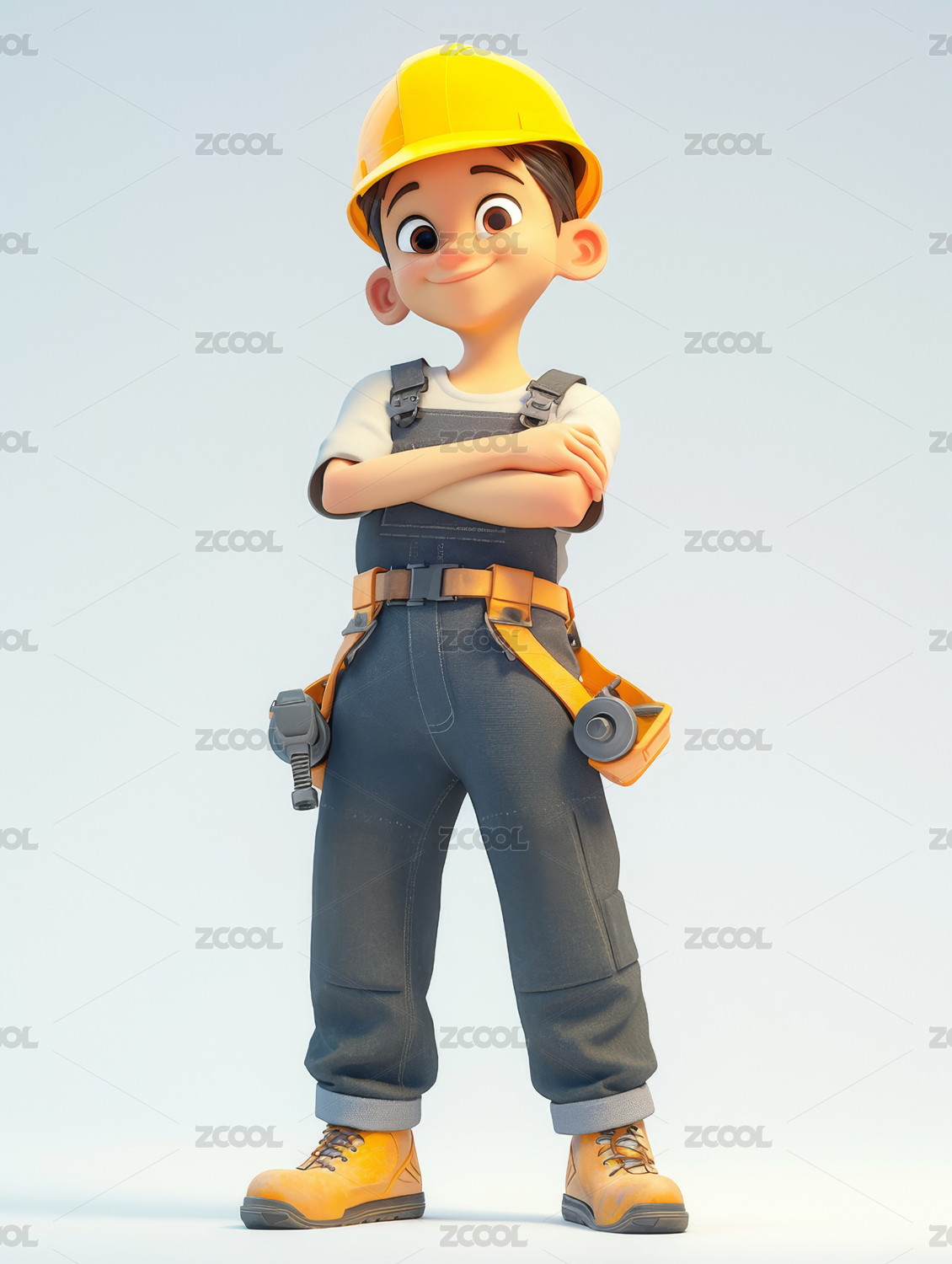 3D,卡通,男孩,安全,专业,制服,技工,电工,物业,检修