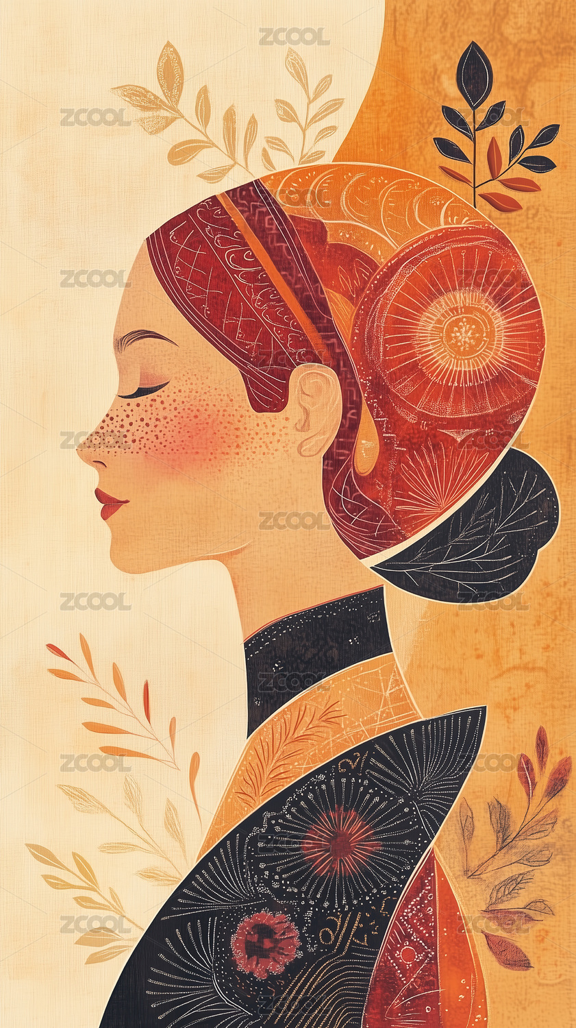 设计,艺术,装饰,插画,肖像,文化,图案,彩色,女性,亚洲