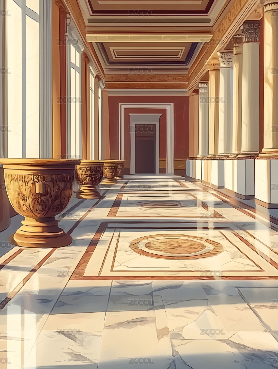 金碧辉煌大理石走廊棋盘格瓷砖地板