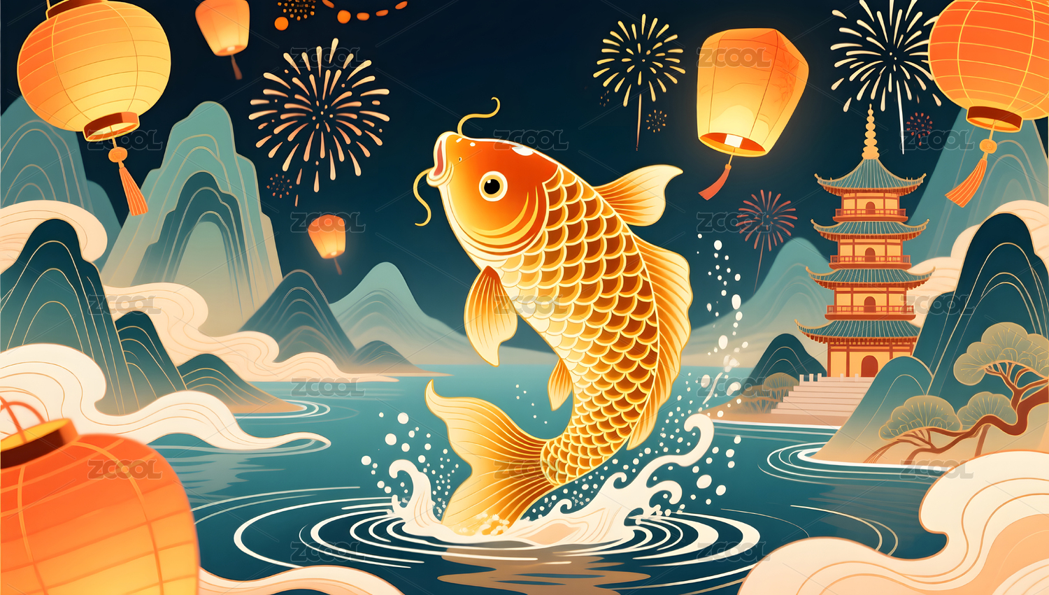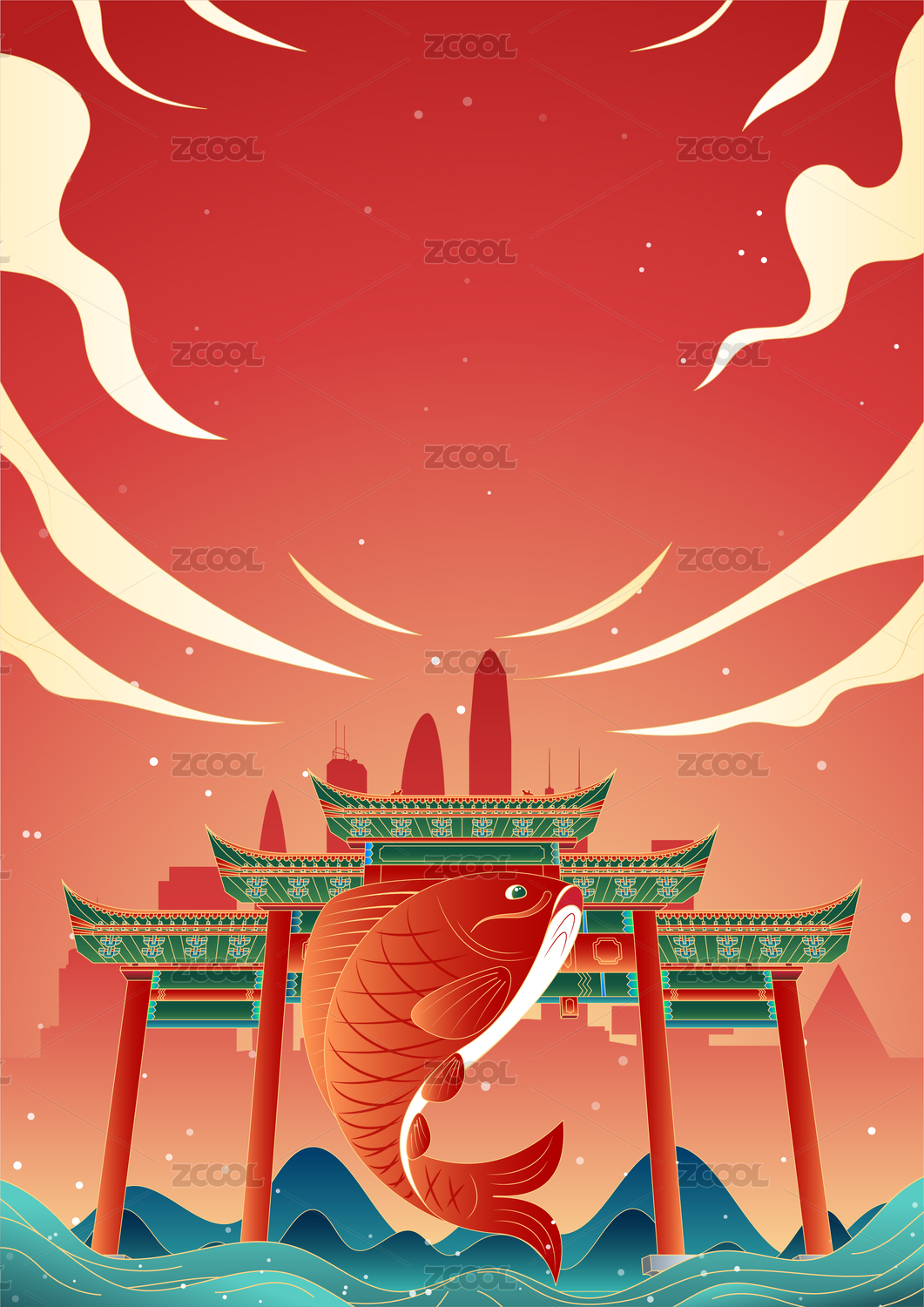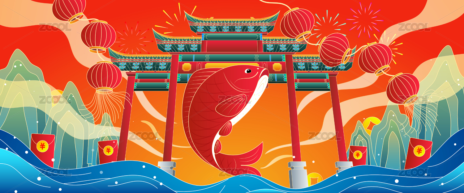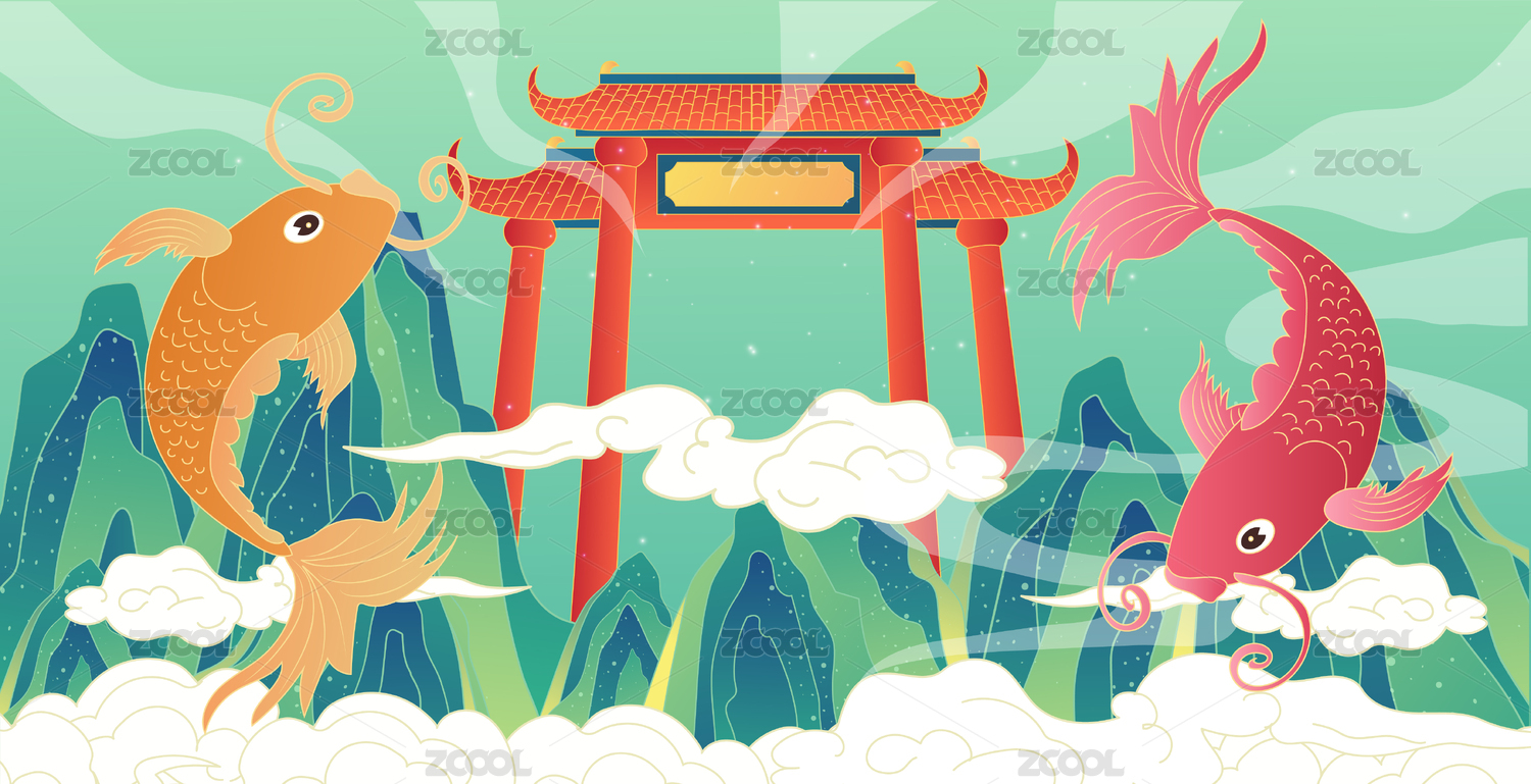 高考,考试,金榜题名,中考,鲤鱼,龙门,国潮,国风,中国风,海浪