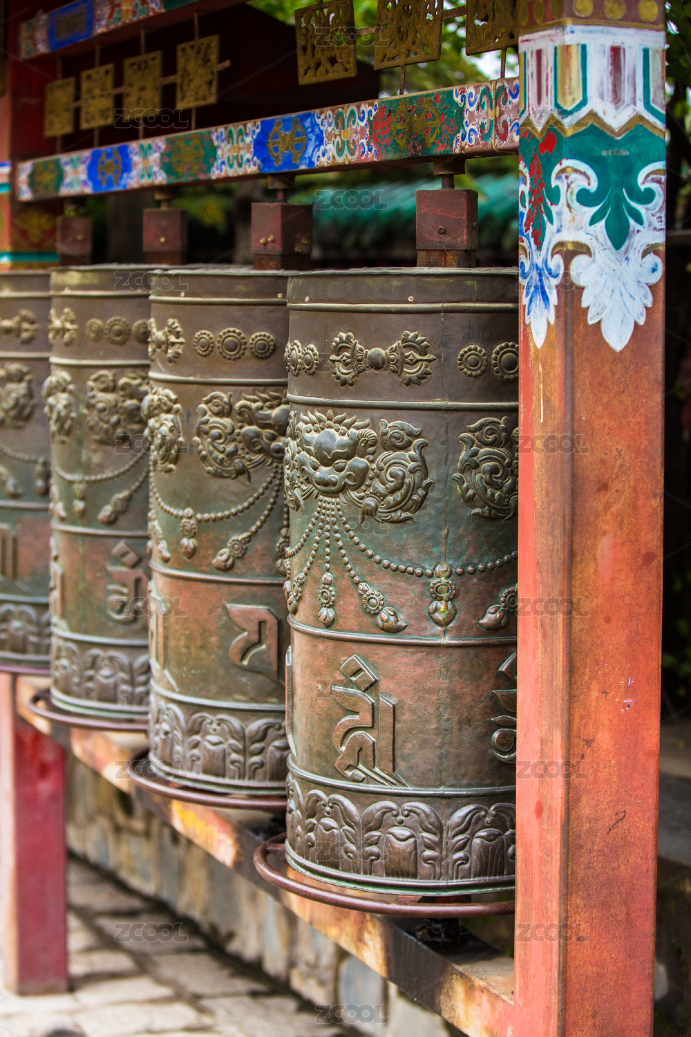 藏传佛教寺庙里面的转经筒,大光圈拍摄
