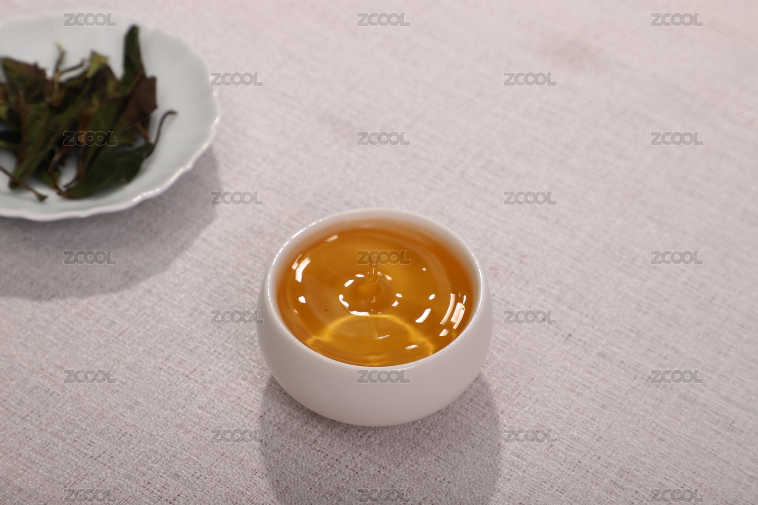 浅色背景下的茶叶和茶水