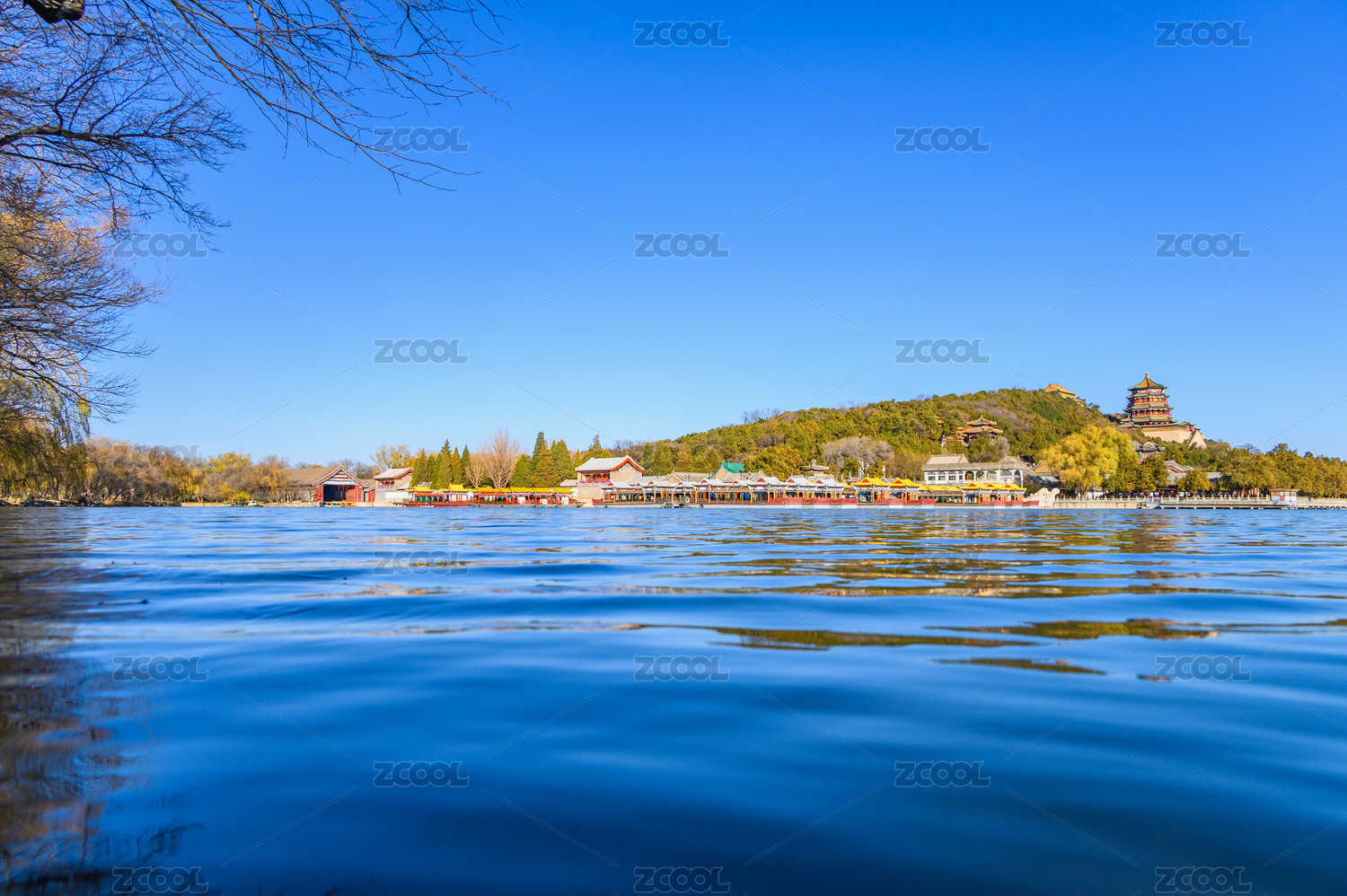冬季,颐和园,蓝天,建筑,湖面,风光,阳光,无人,天空,树