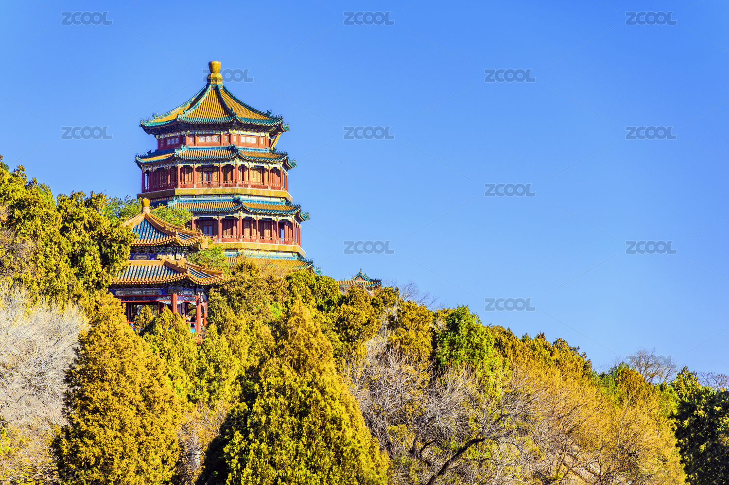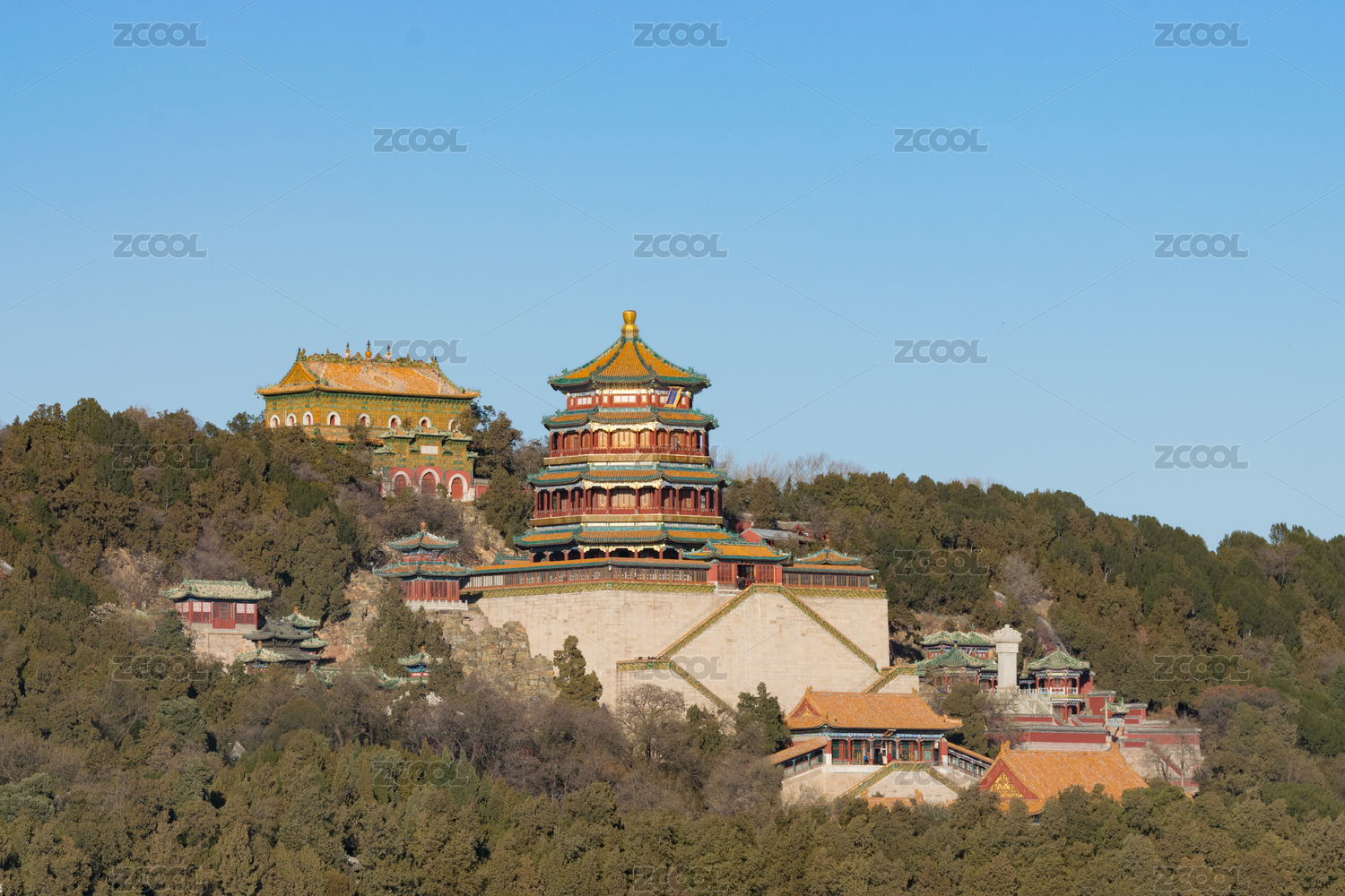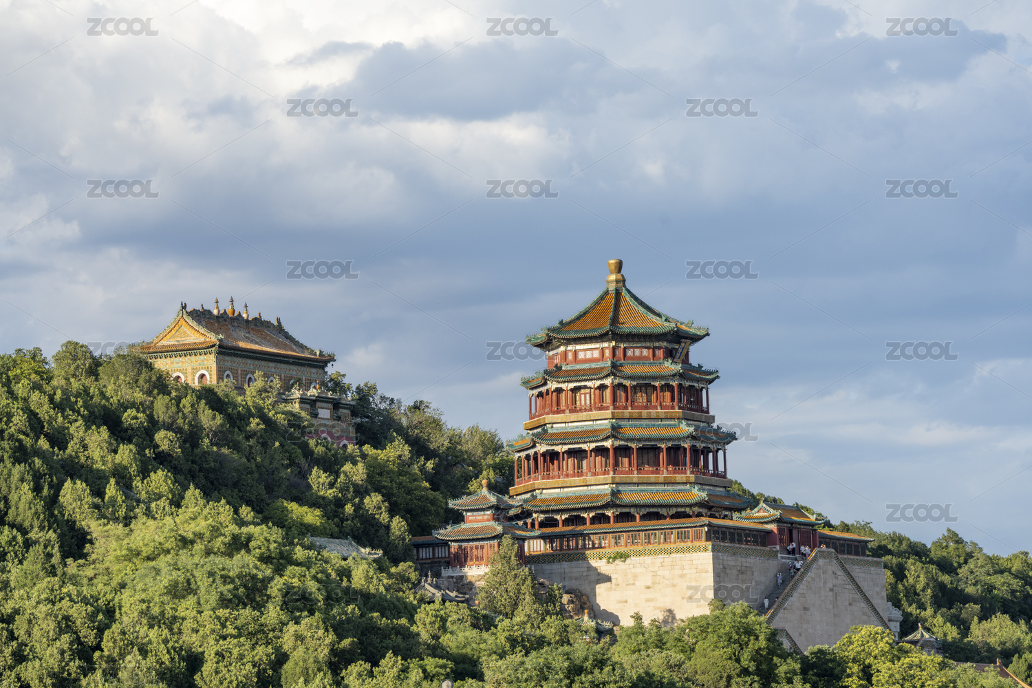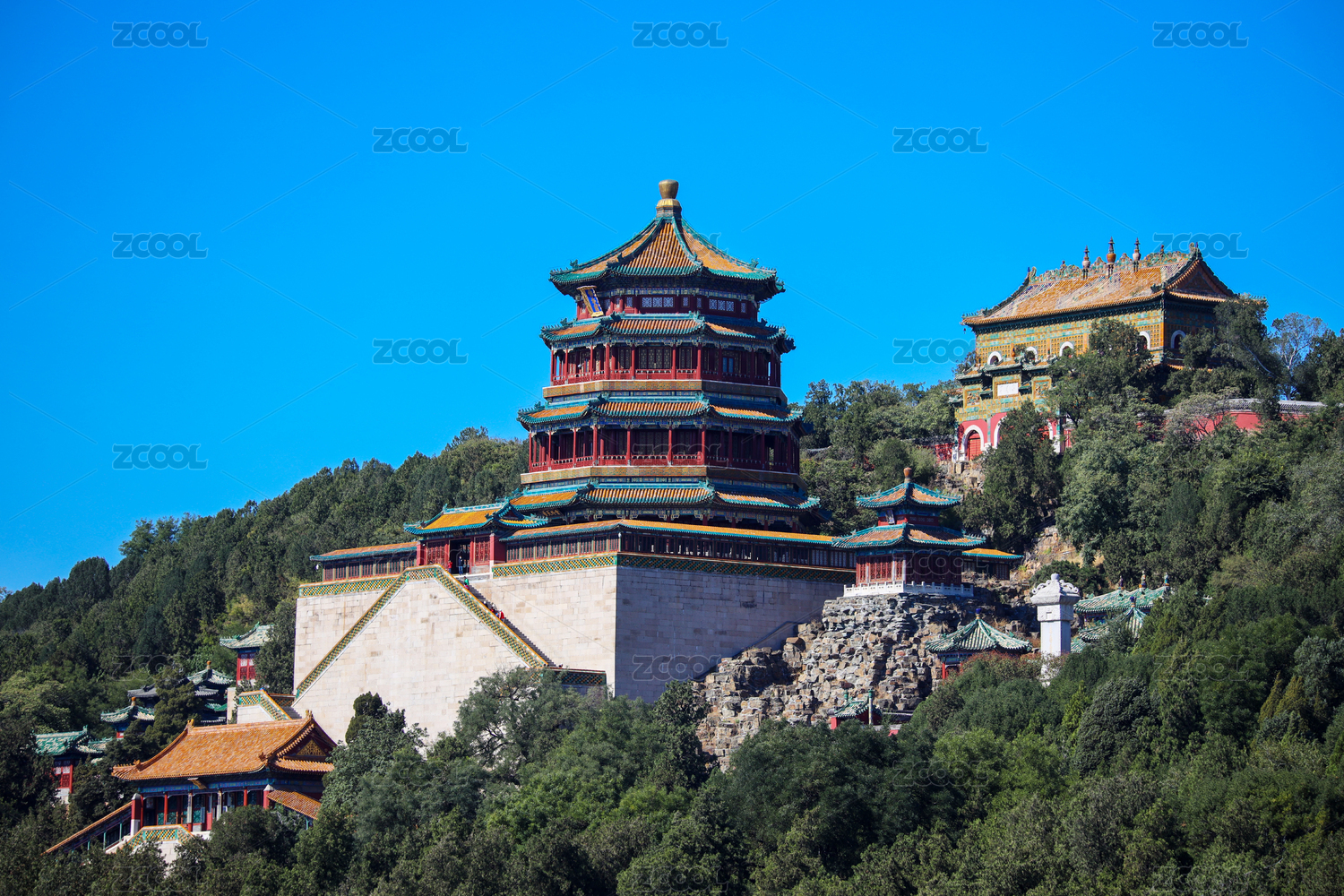中国北京颐和园中万寿山顶的佛香阁和智慧海