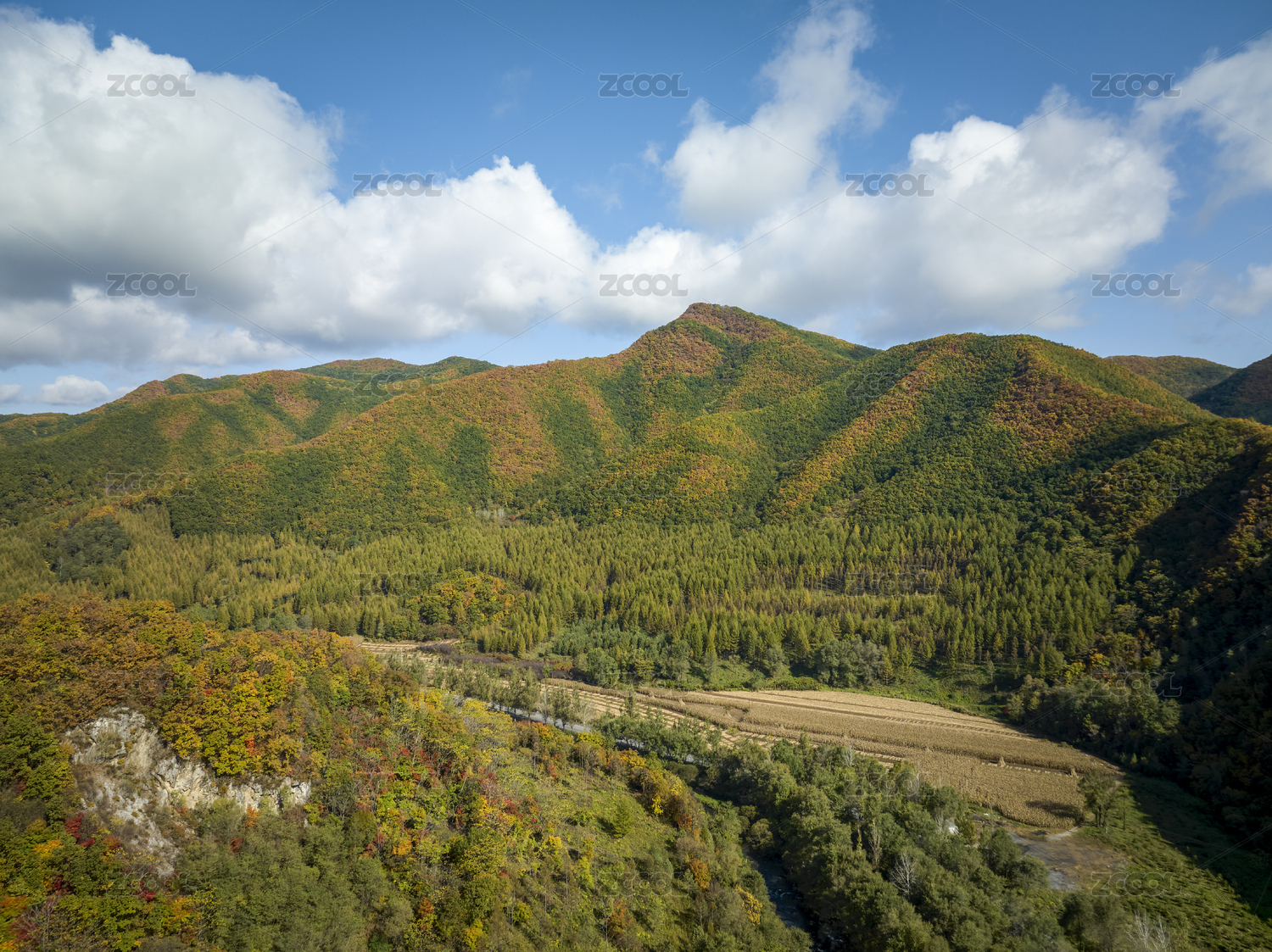 秋日山谷林木风光