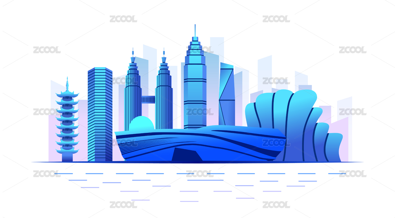 深圳天际线地标建筑描边风扁平矢量插画海报