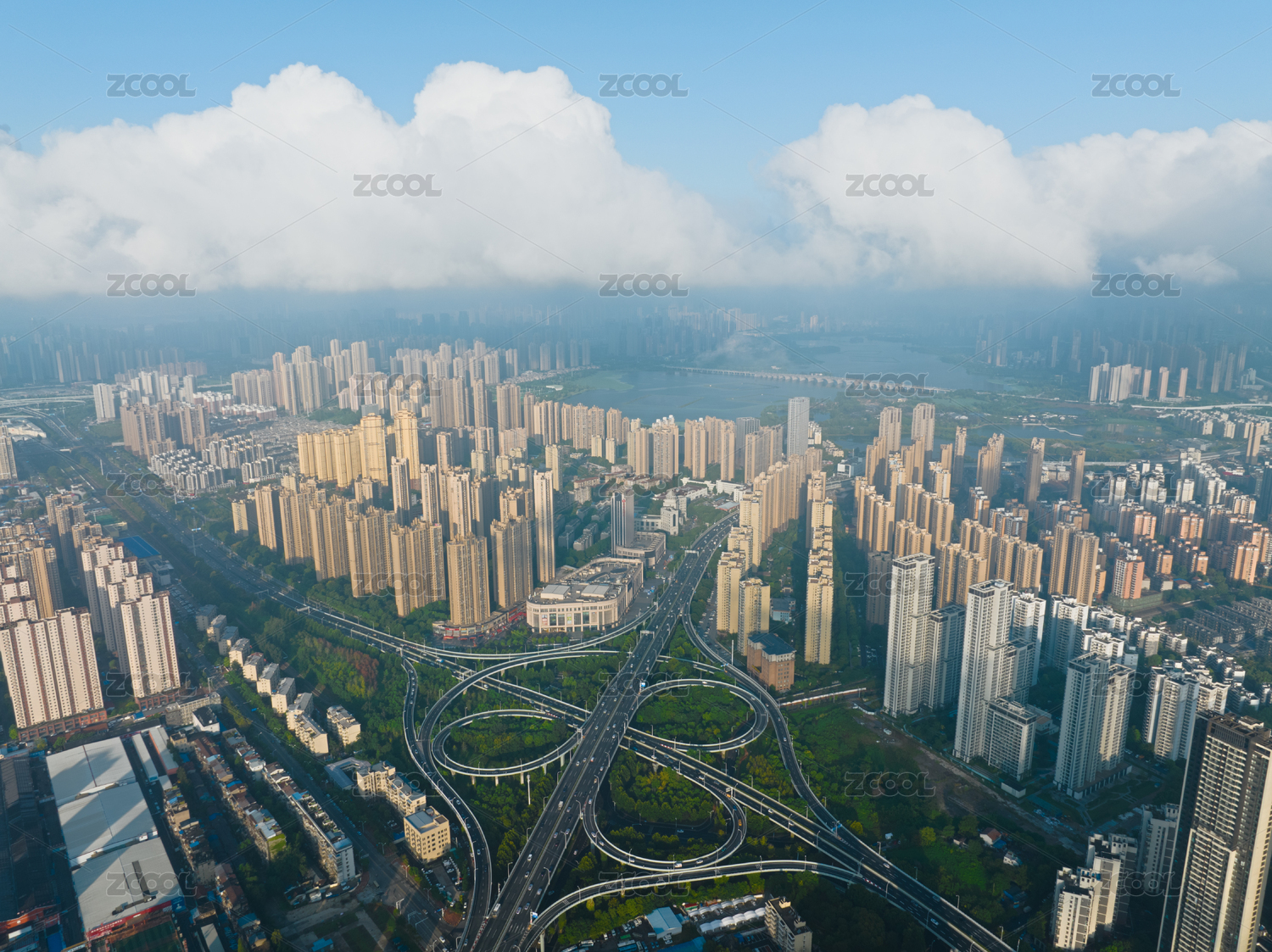 浙江省杭州上城区城区秋石高架晨曦航拍