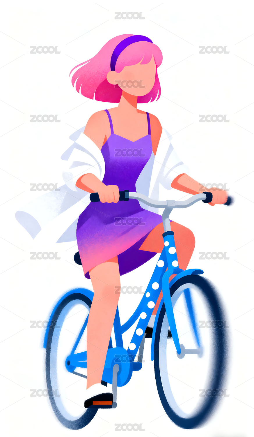 立夏节气女孩穿着骑行服运动插画,踏春春游