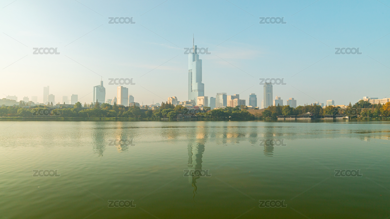 江苏南京玄武湖紫峰大厦城市天际线风光