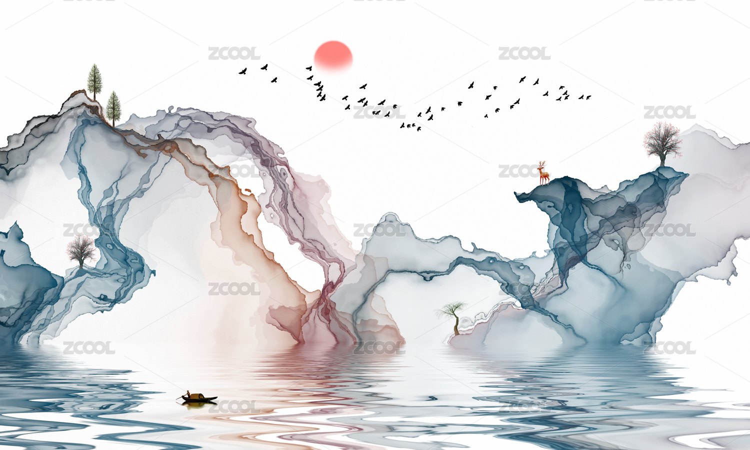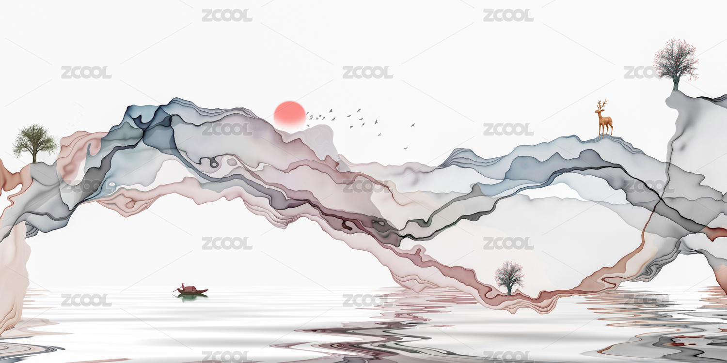 唯美抽象意境彩色水墨写意山水装饰画背景