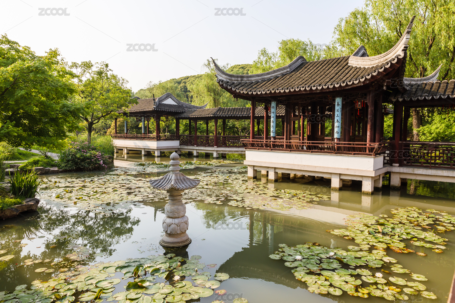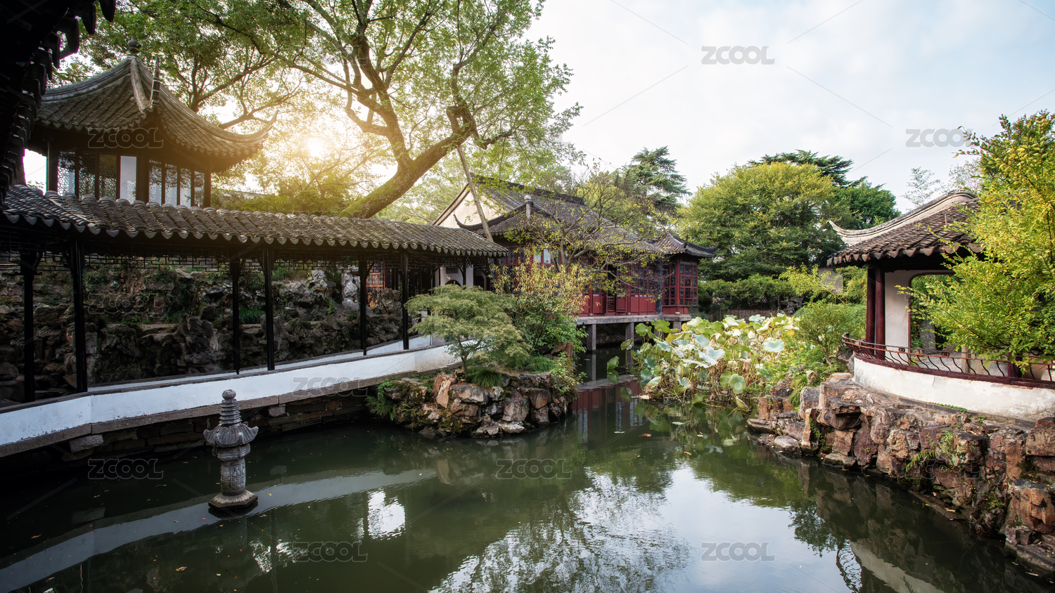 江苏同里古镇耕乐堂池塘假山古建筑景观