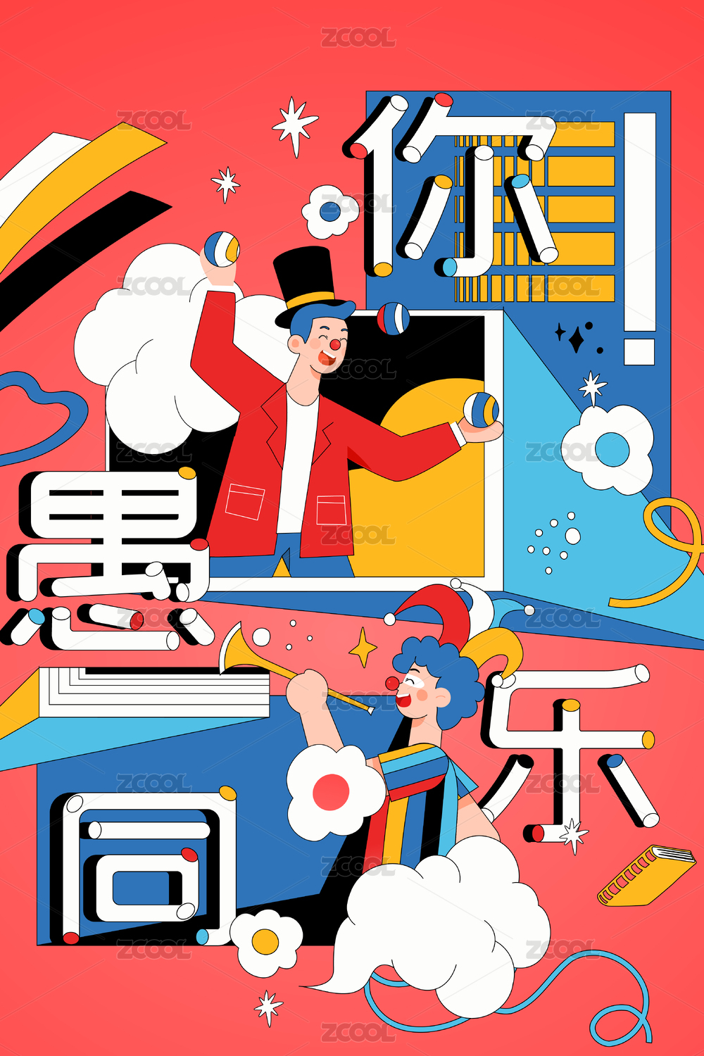 愚人节,插画,海报,字体,设计,愚您同乐,快乐,banner,公众号,头图