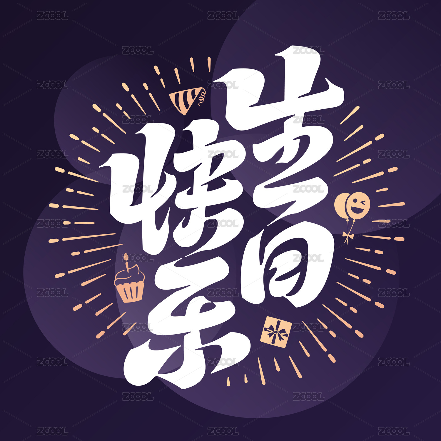 生日快乐祝福语蛋糕气球音乐缎带书法字体横
