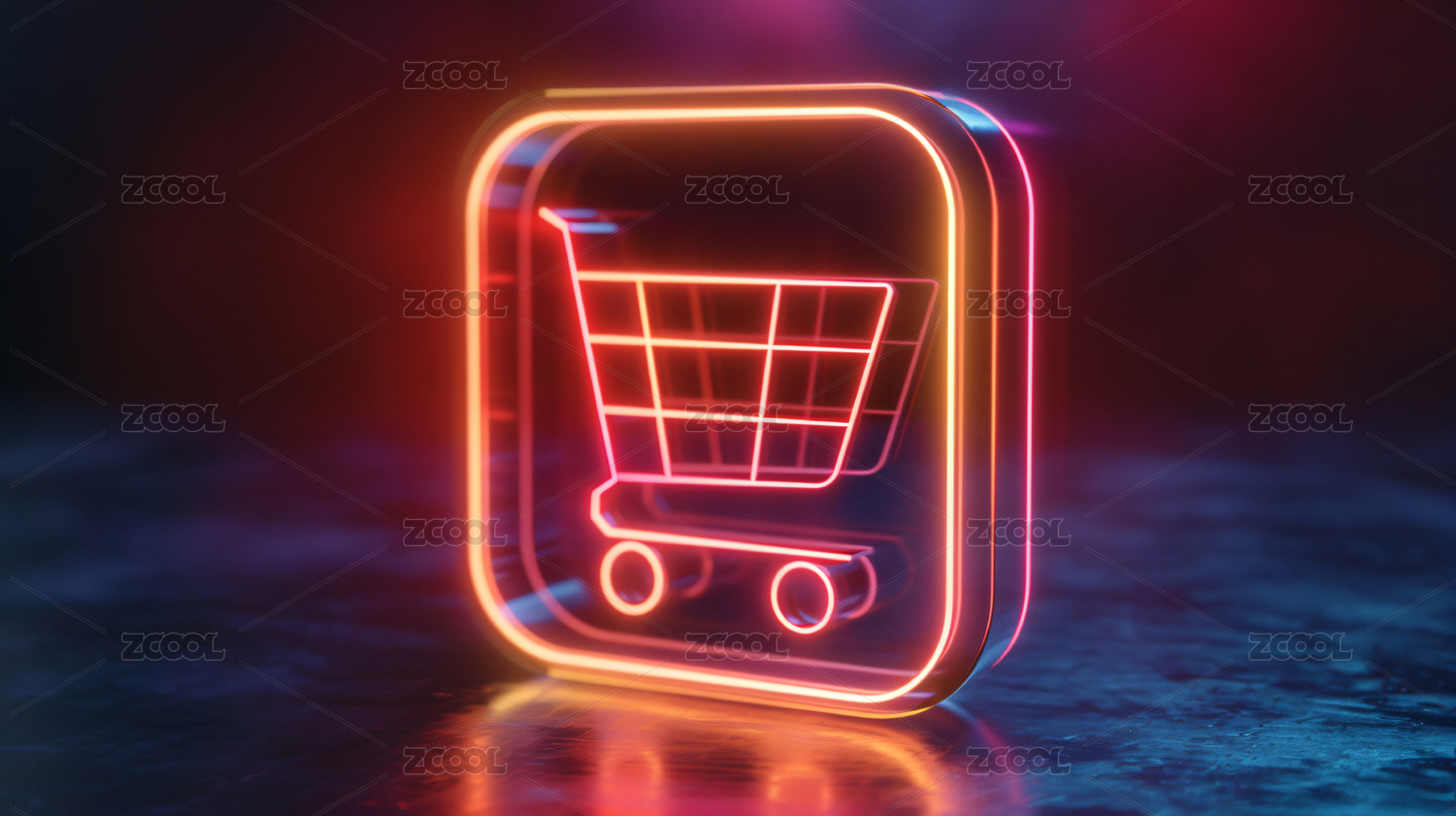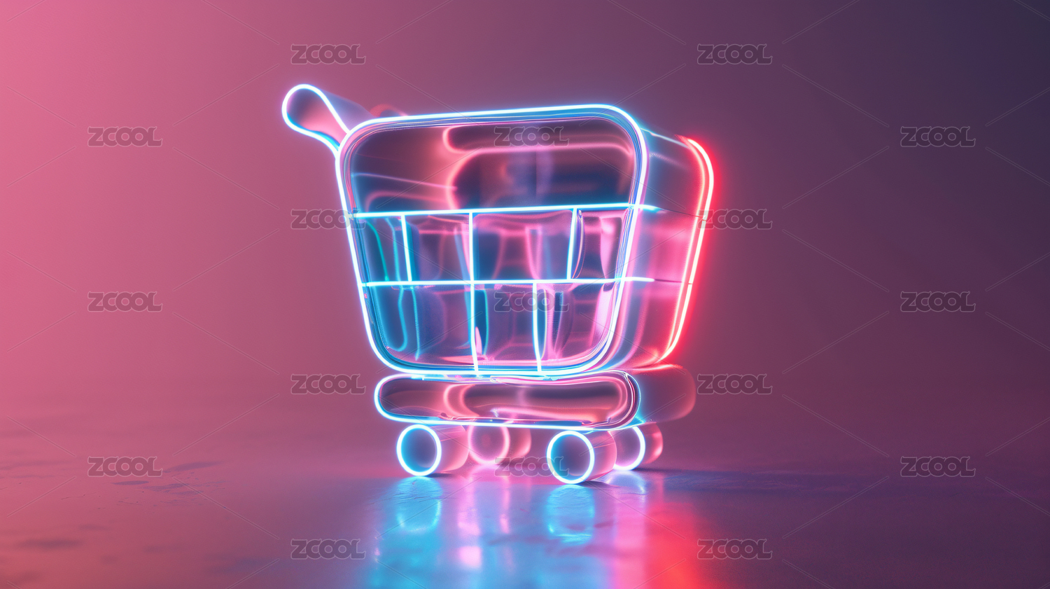 霓虹灯购物车未来科技感