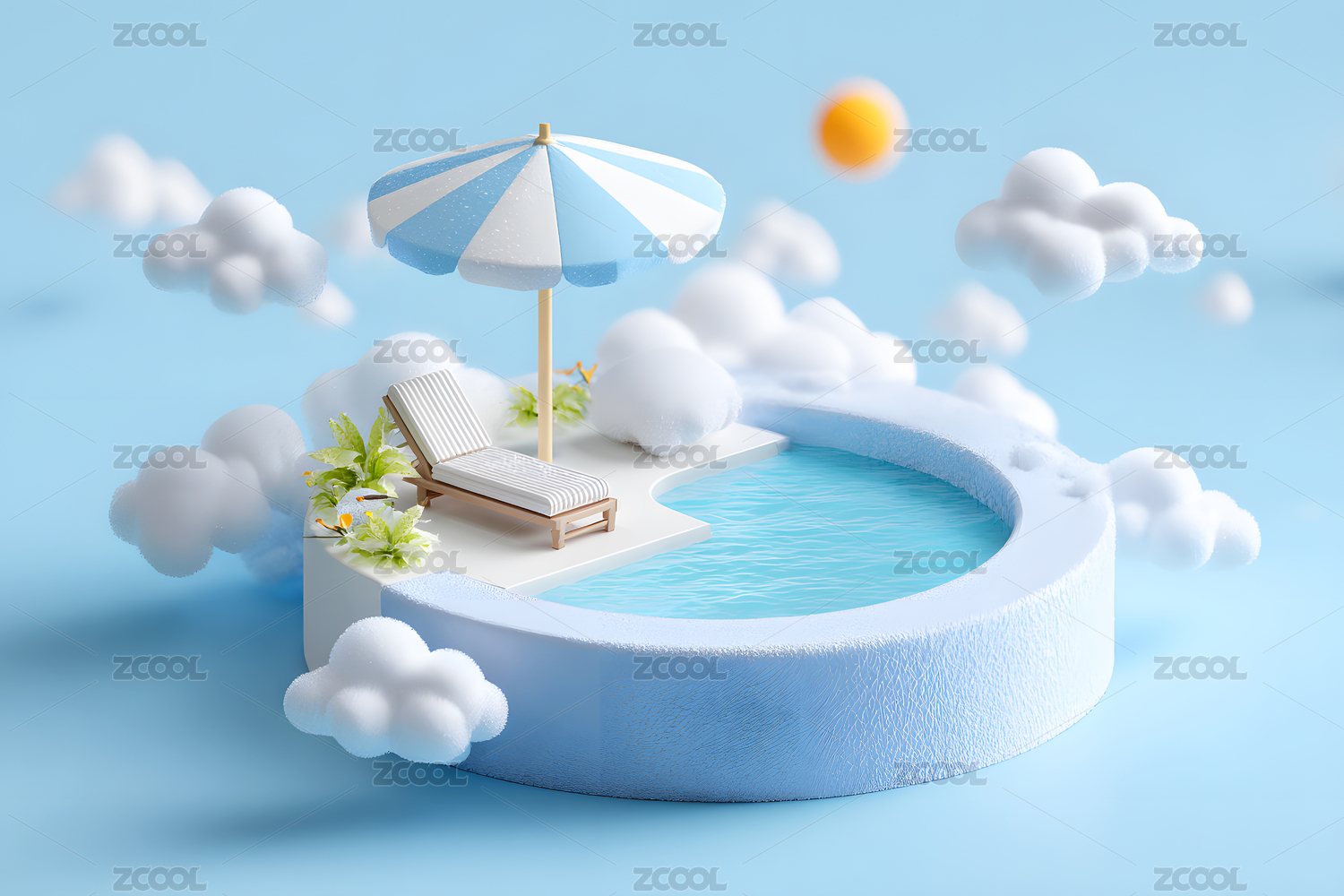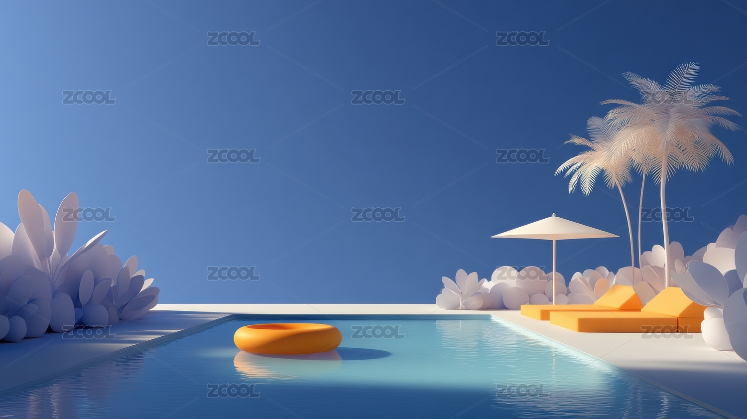 游泳池3D立夏节气假期旅行游泳避暑背景