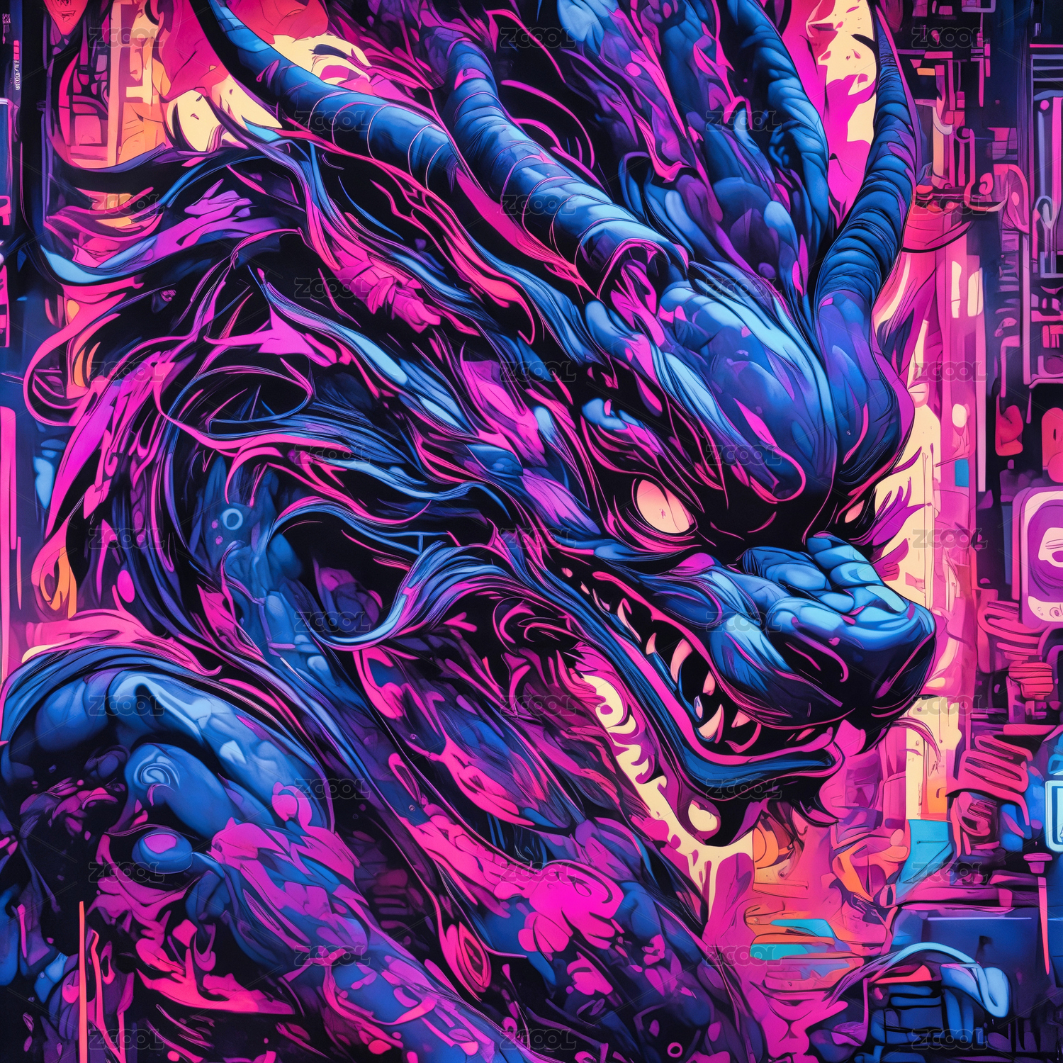 龙,龙王,东海龙王,机械,机甲,赛博朋克,故障风,科幻,概念,涂鸦