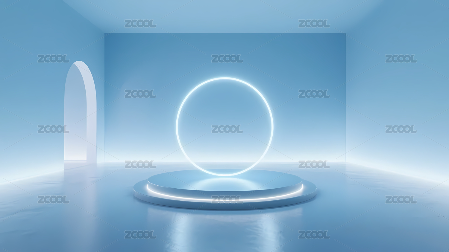 蓝色,科技,圆形,展示台,舞台,背景,商务,设计,展览,简单