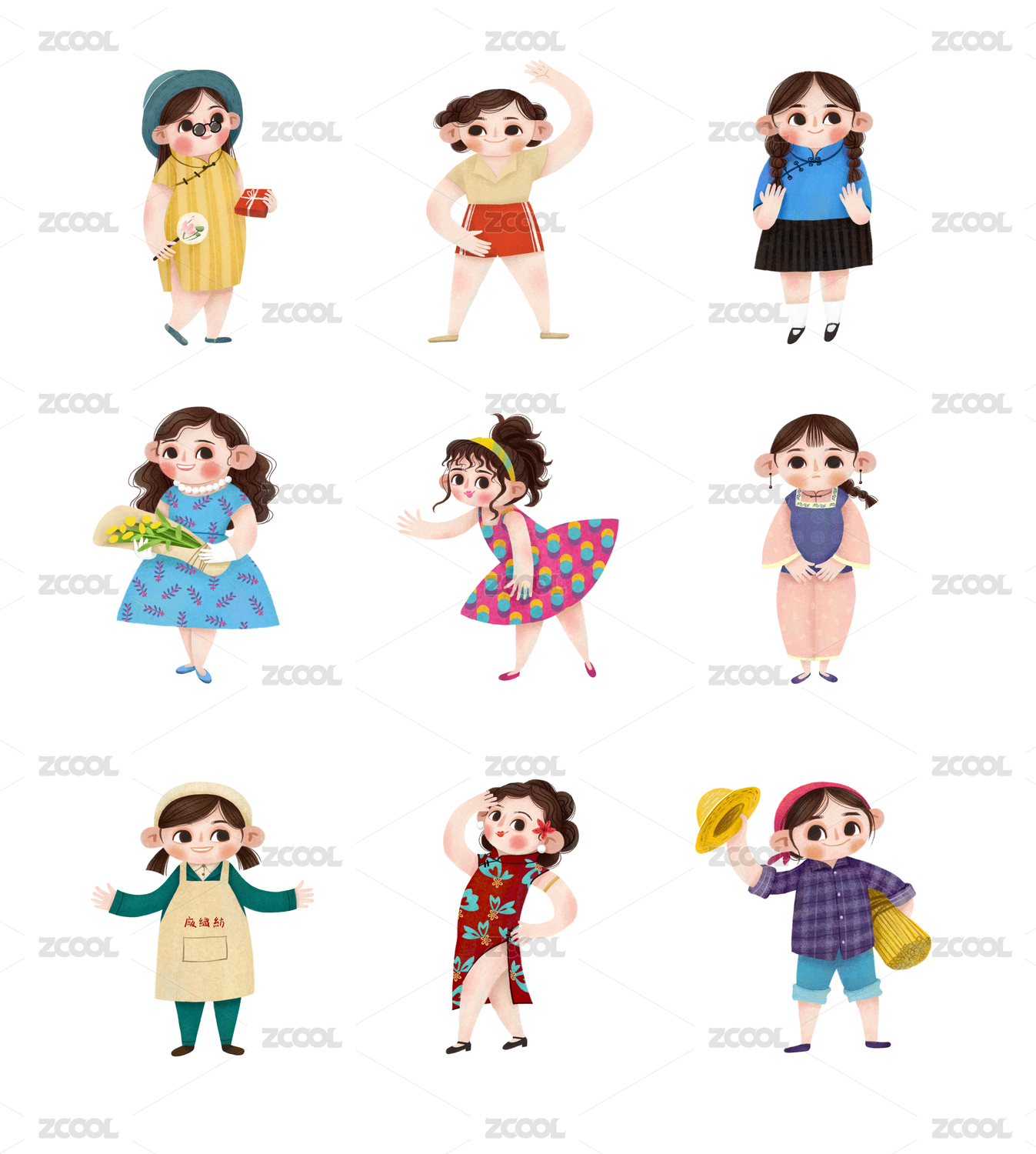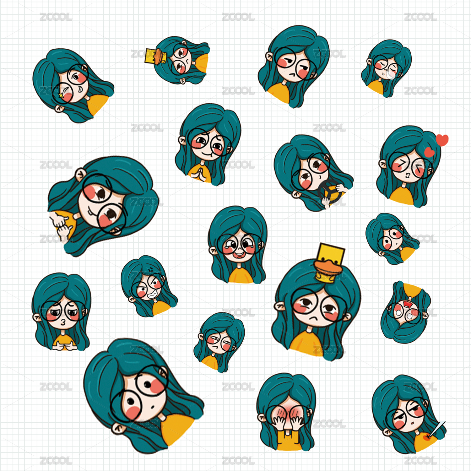 卡通人物表情包套图可爱女孩形象贴纸1:日常篇