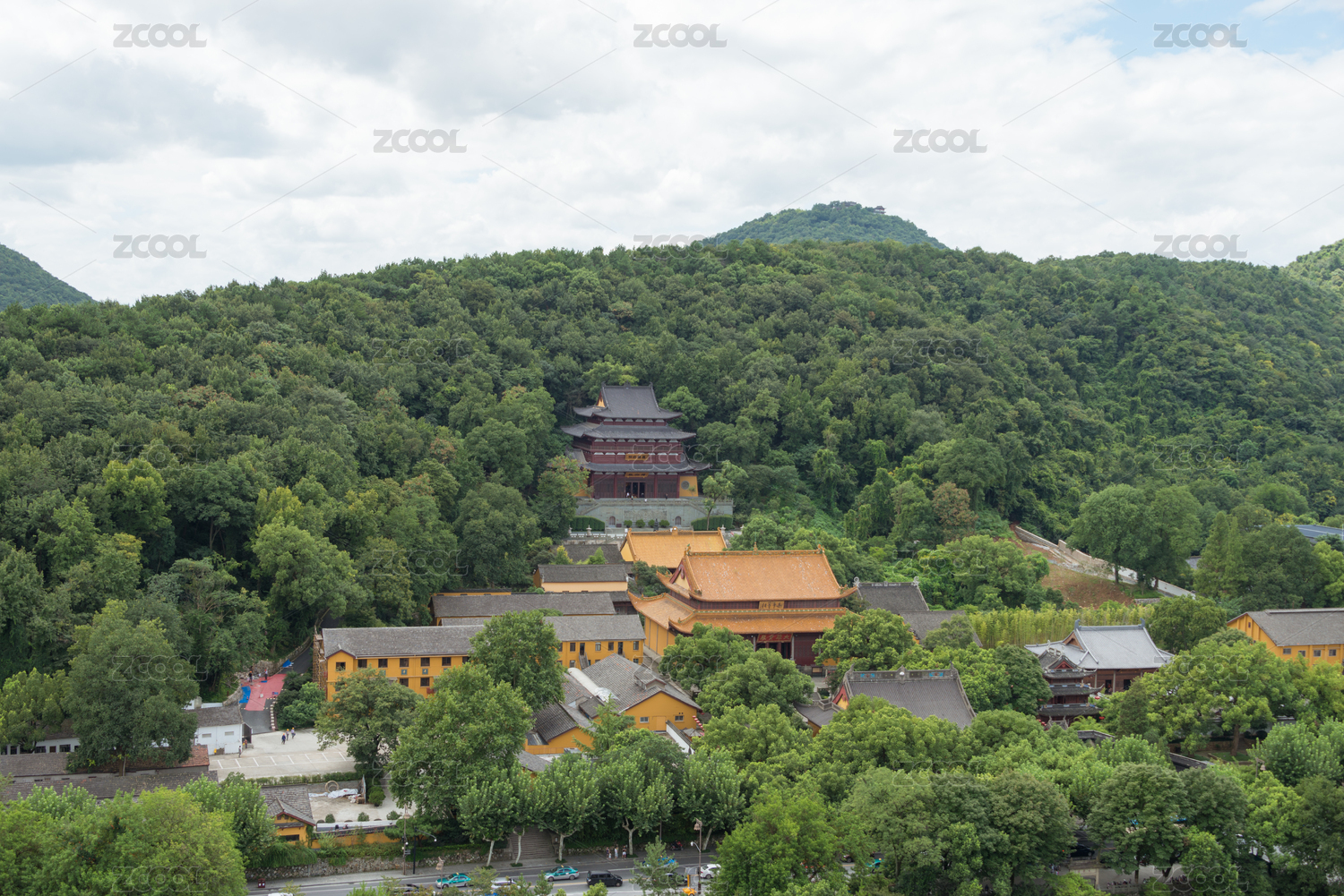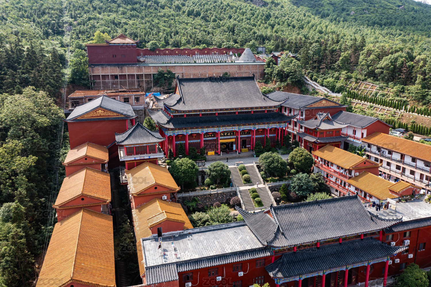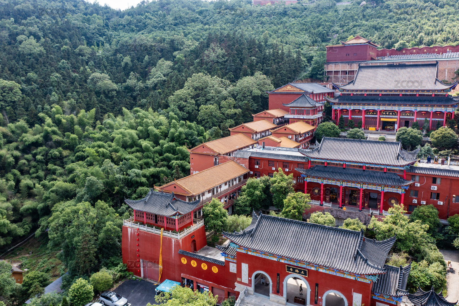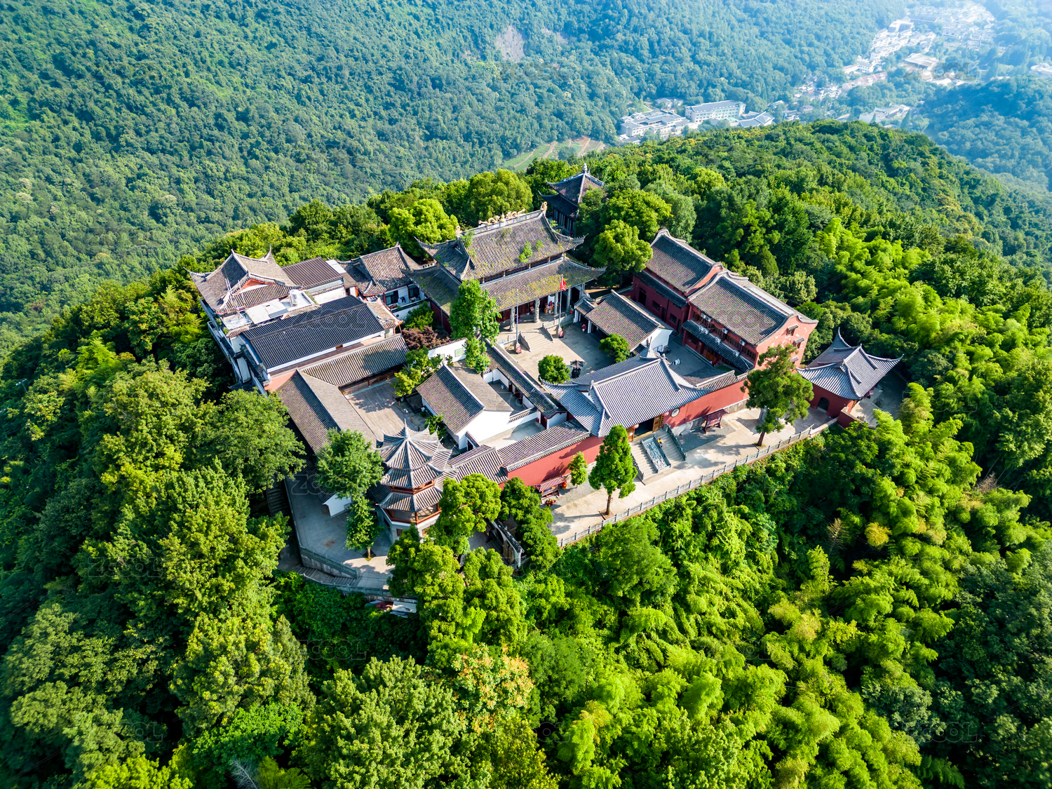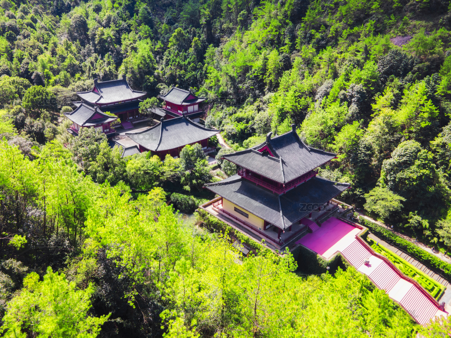 五岳衡山在大山深处的佛家庙宇园林建筑群风光