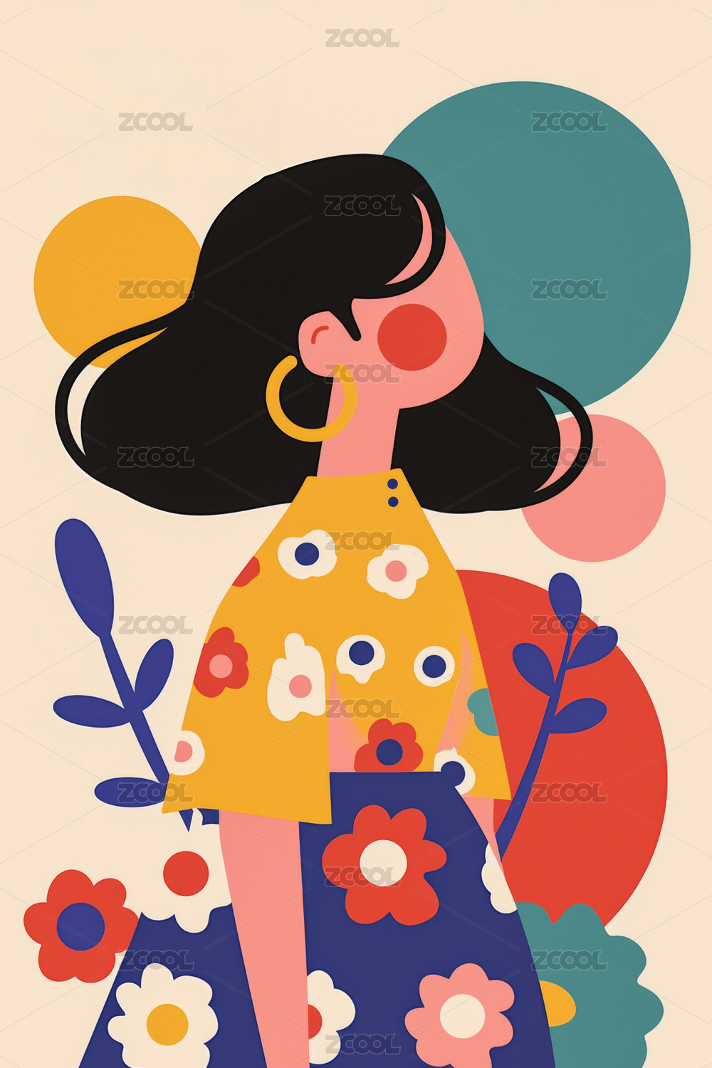 插画,夏天,植物,绿叶,艺术,女孩,立夏,夏至,秋天,绿植