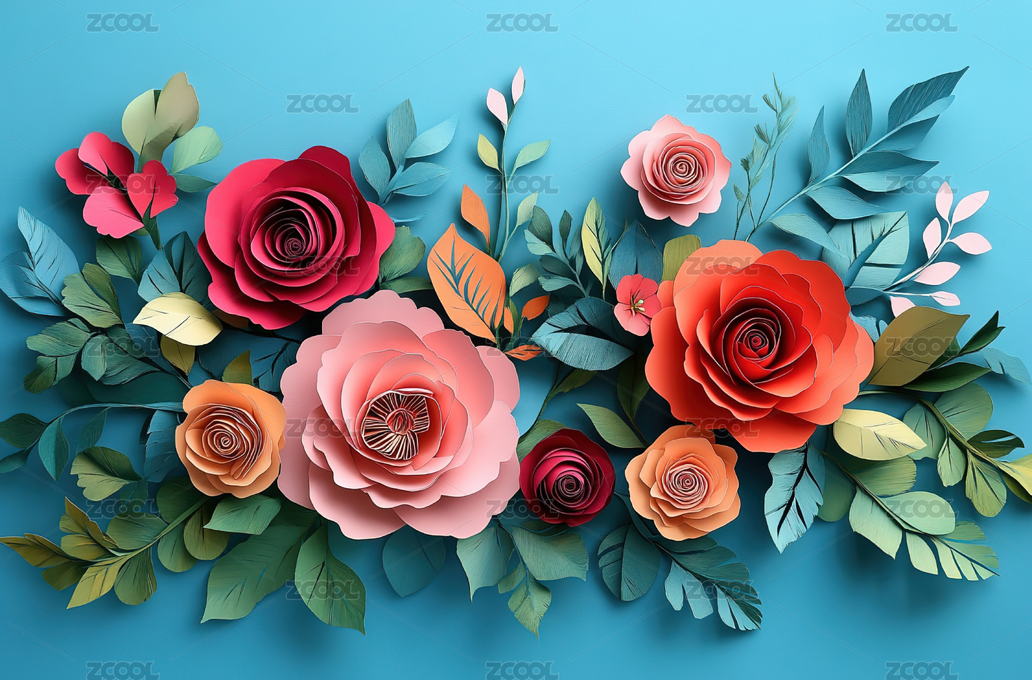 蓝色背景下玫瑰的特写镜头 剪纸风格